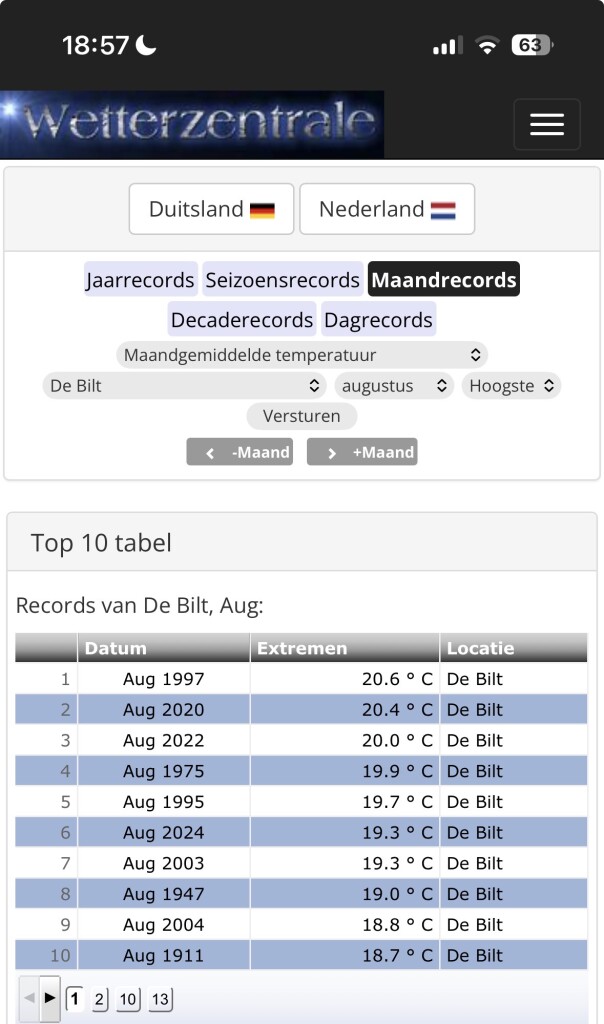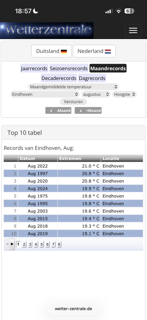 Toeval. Ik ben dit echt niet met je eens. Kijk eens naar de juni van de afgelopen vijf jaren. En dan heb je toch te met dezelfde klimatologisch en geografische gevoeligheden. In juni zitten we al vaak heel erg dichtbij de Tg 20,0 en het is 2026 en dan ga jij beweren dat juli een Tg20,0 pas gaat halen op 2100 of daarna als alle goden de juiste kant op bidden? Ik vind dit een beetje gekkig! Eindhoven 9 van de 10 uit de top 10 afgerond allemaal 20,0 of meer in juli.