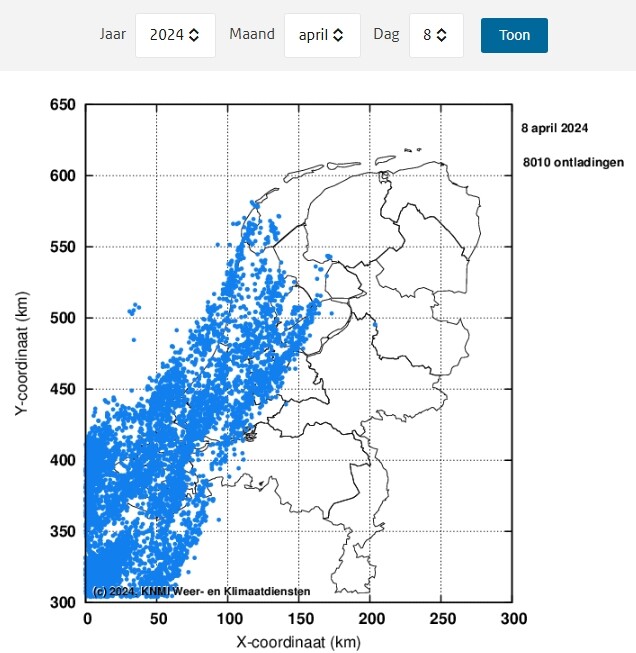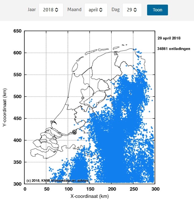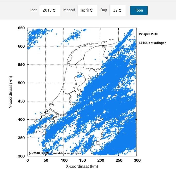 De natste aprilmaand ooit geregistreerd hier (enige >100 mm) was tevens ook de meest onweersrijke.