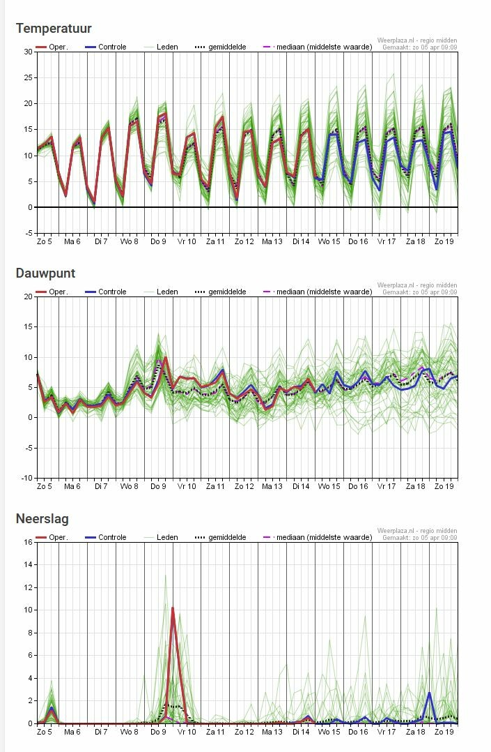 Lange tijd circa 15c. Geen vorst. Donderdag warmste dag. Het blijft wachten in M Nl op de eerste 20-er.