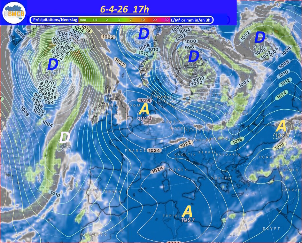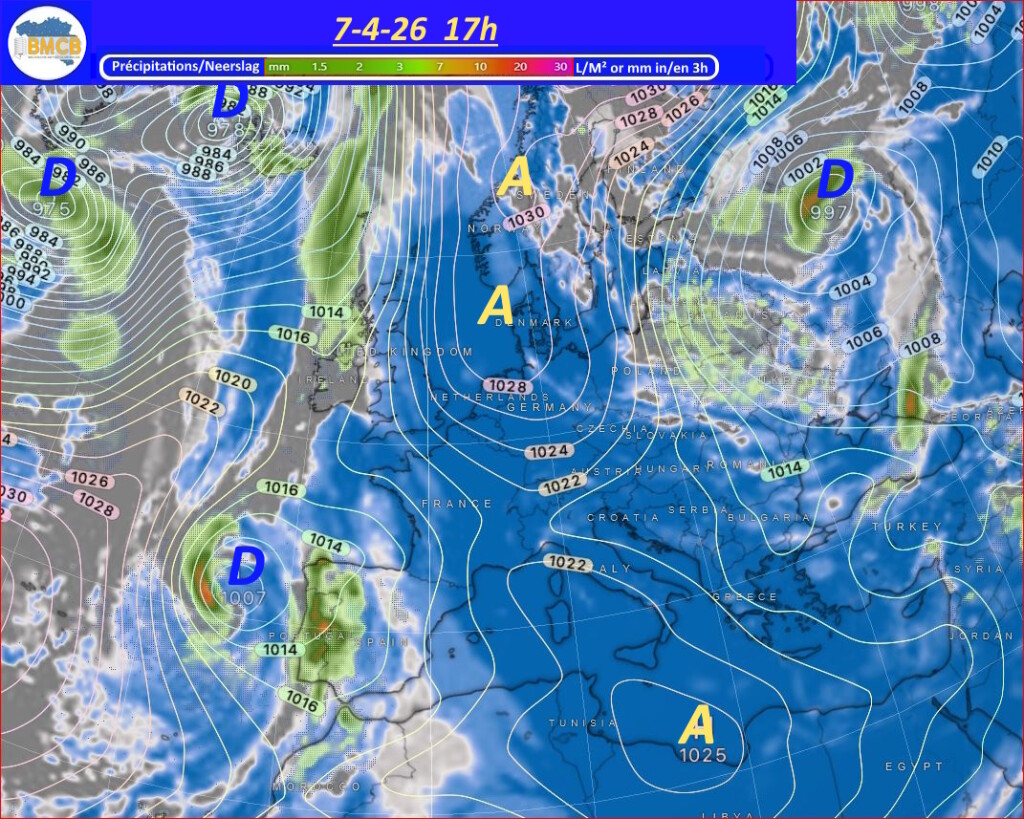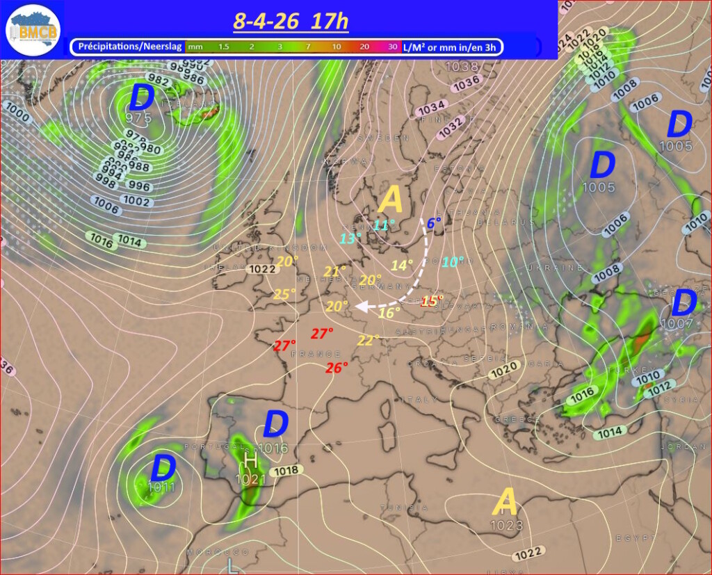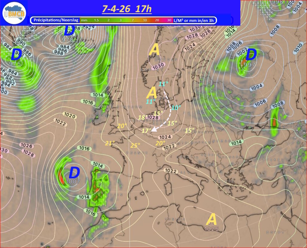 De weersituatie zal waarschijnlijk gedomineerd blijven door een uitgestrekt hogedrukgebied boven het noorden van het Europese continent, met een lichte verschuiving naar het westen en noorden in de loop van de periode. Deze configuratie houdt een continentale stroming boven onze regio in stand, doorgaans droog en stabiel.