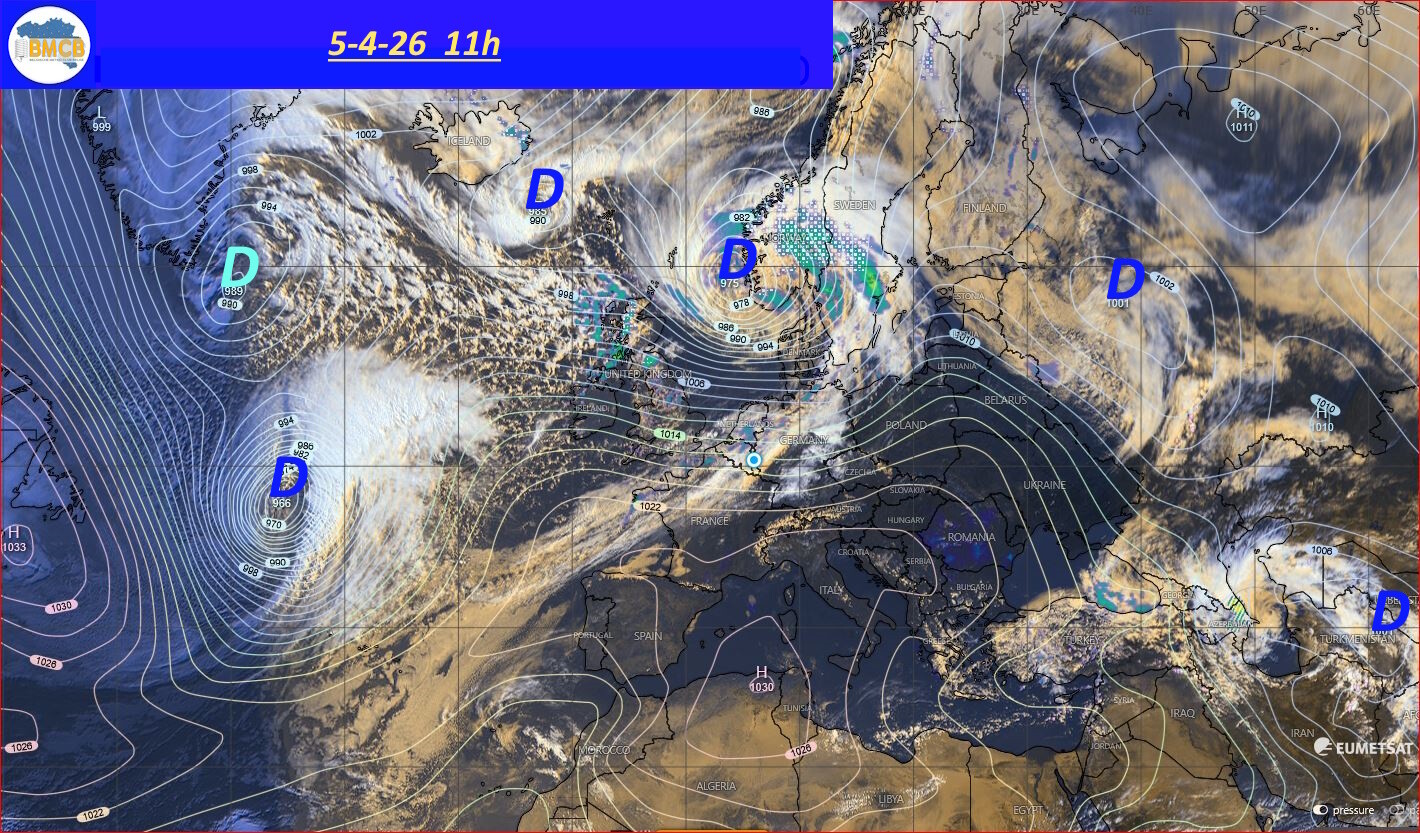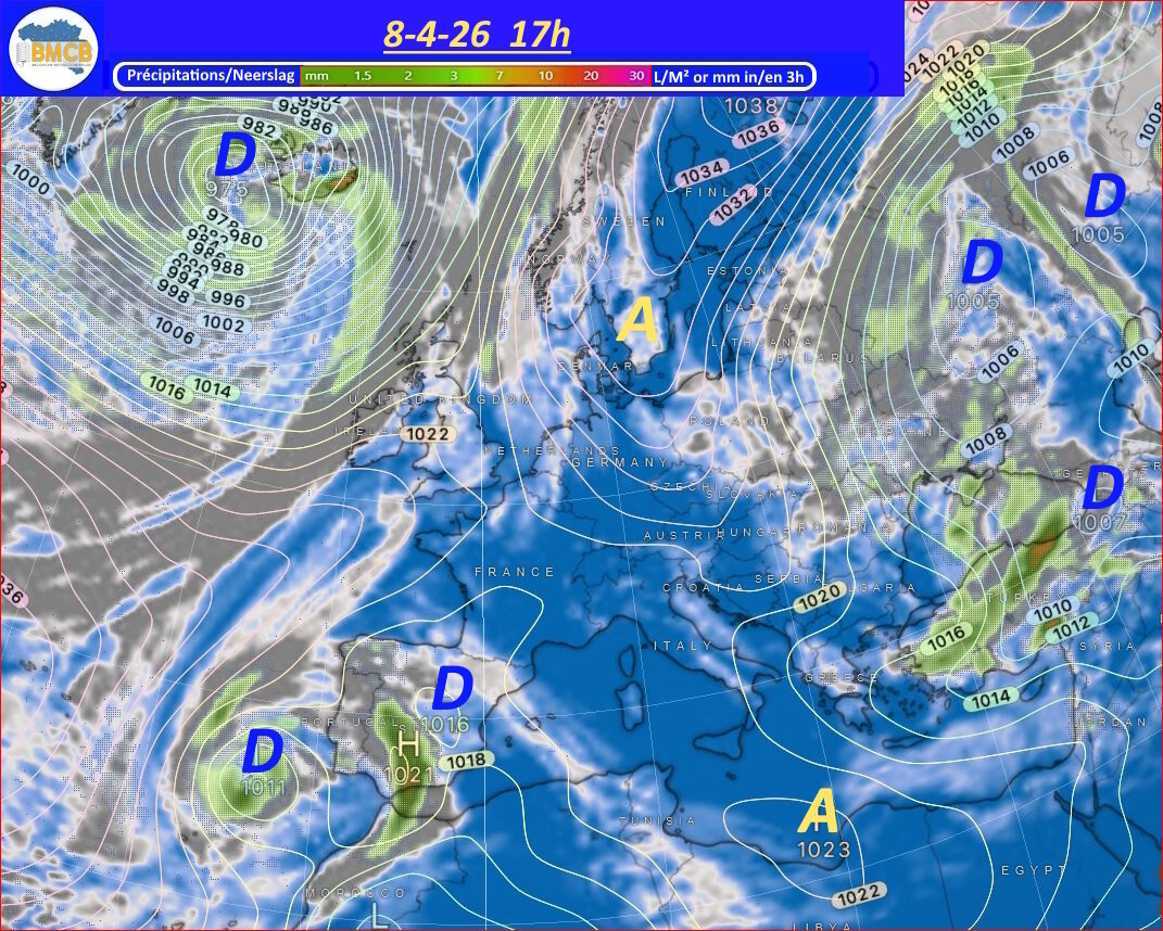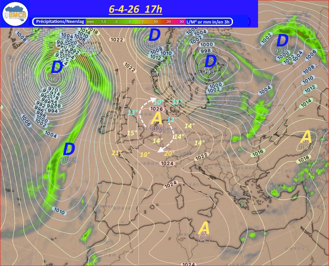 De weersituatie zal waarschijnlijk gedomineerd blijven door een uitgestrekt hogedrukgebied boven het noorden van het Europese continent, met een lichte verschuiving naar het westen en noorden in de loop van de periode. Deze configuratie houdt een continentale stroming boven onze regio in stand, doorgaans droog en stabiel.