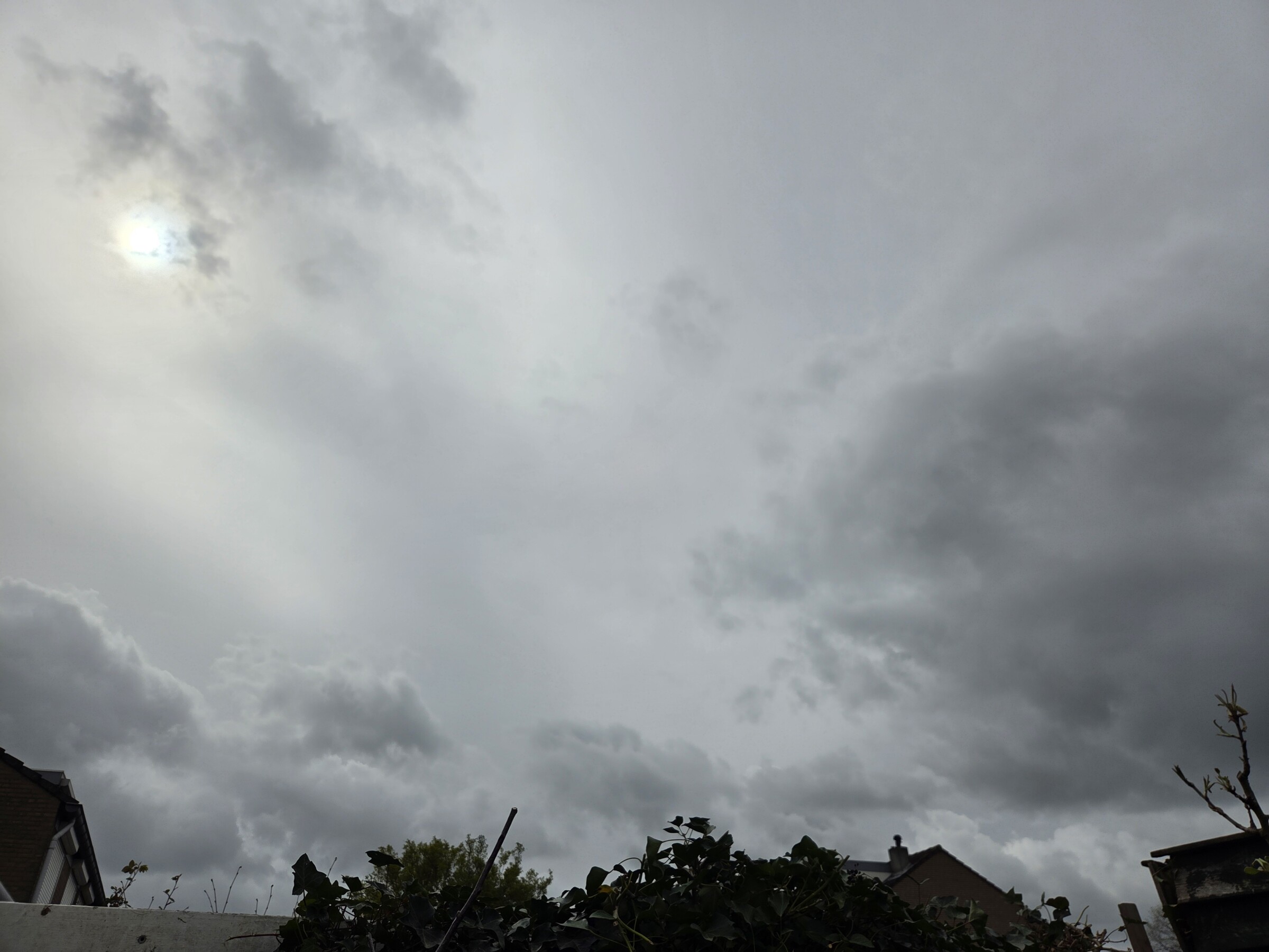 Een verduisterend samenspel van twee wolkensoorten uit het geslacht Stratus. Altostratus met daaronder Stratocumulus. Zeker bij momenten wanneer de Stratocumuli in groot aantal voorkomen, kan het buiten erg donker ogen. Waarop de verlichting binnenshuis weer tijdelijk aan mag.