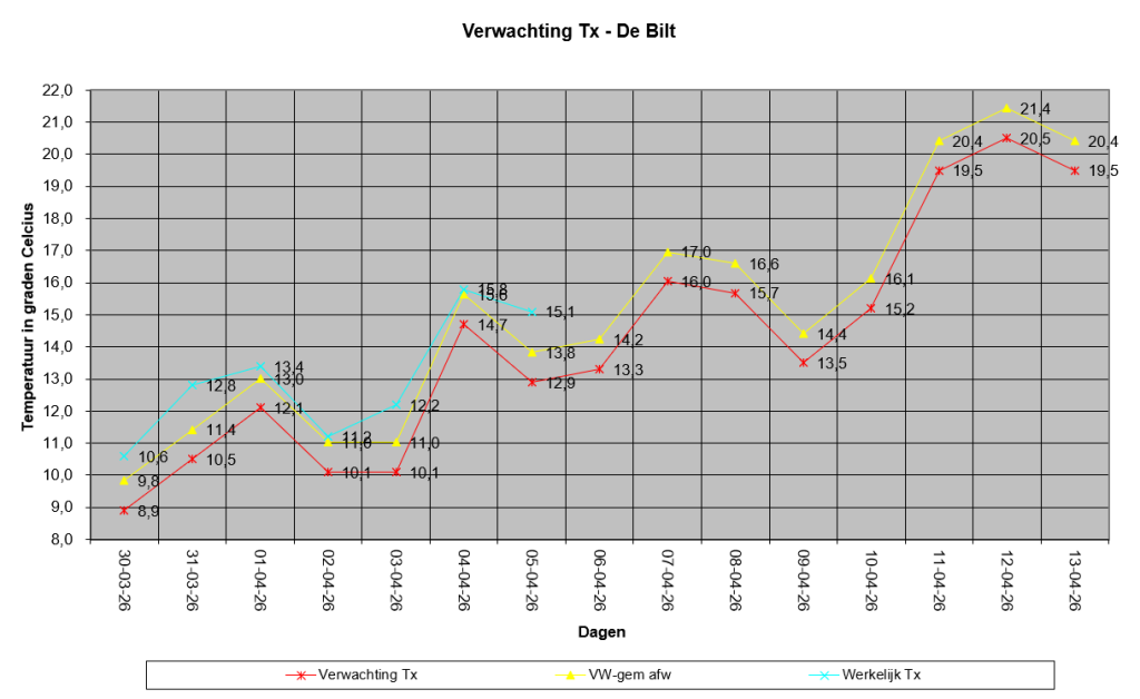 Mogelijk donderdag iets hoger. Daarna voorlopig niet. Valt dit jaar de hoogste temp van de lente in maart? Zou geweldig zijn (weerbril op) maar, erg onwaarschijnlijk.