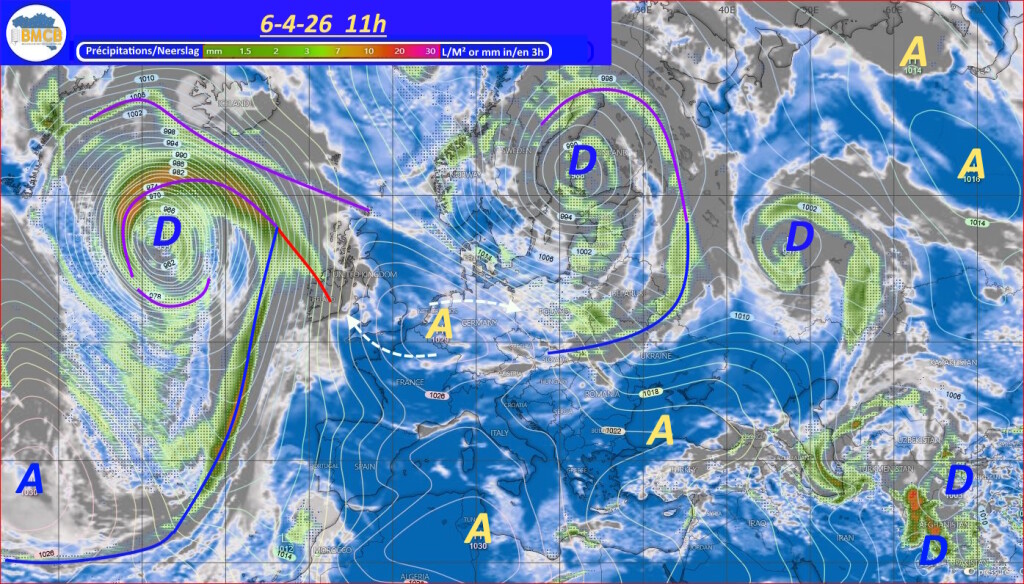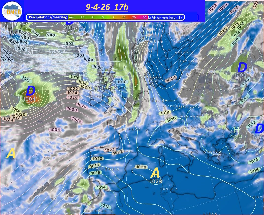 Deze configuratie houdt onze regio in een stroming eerst uit noordoost en later uit oost, met gematigde temperaturen en een toenemende kans op neerslag.