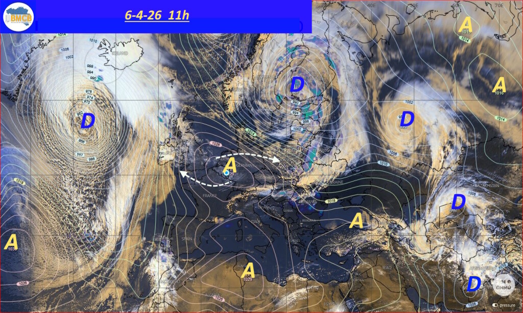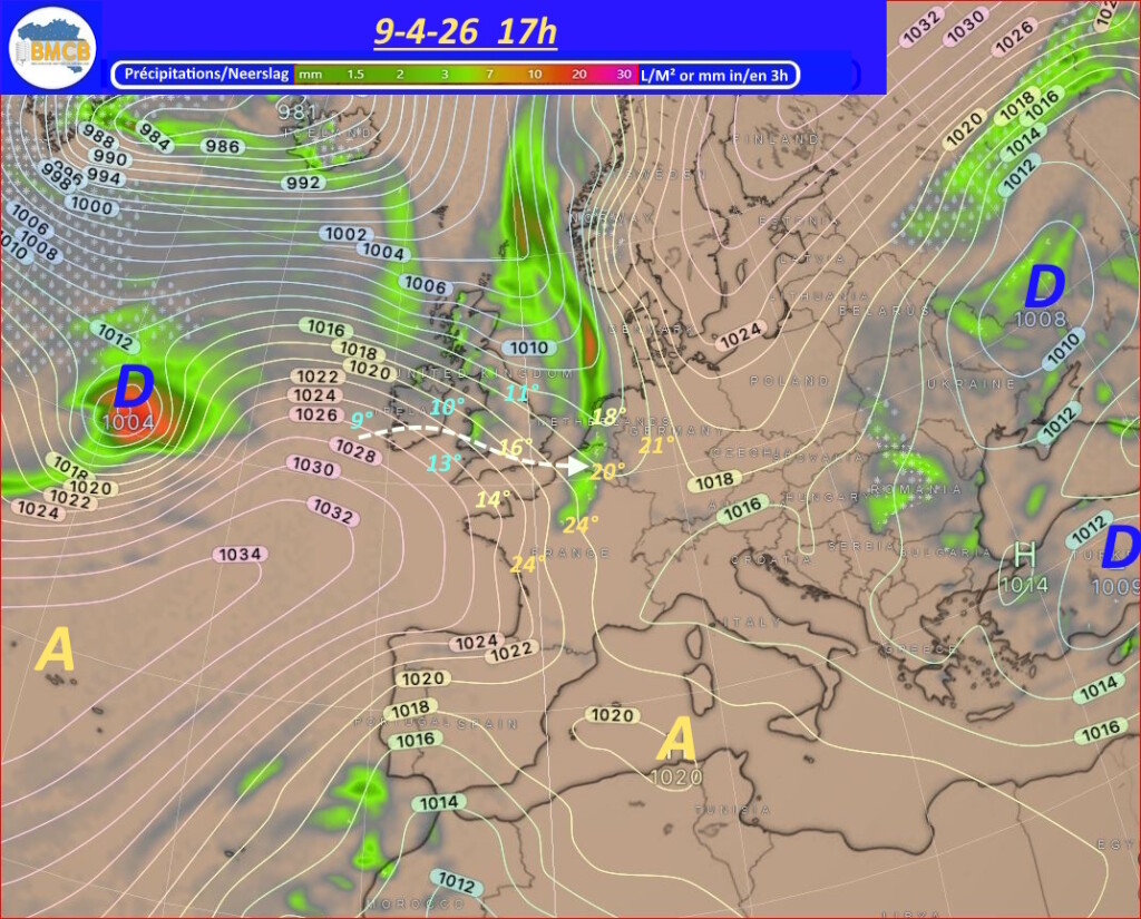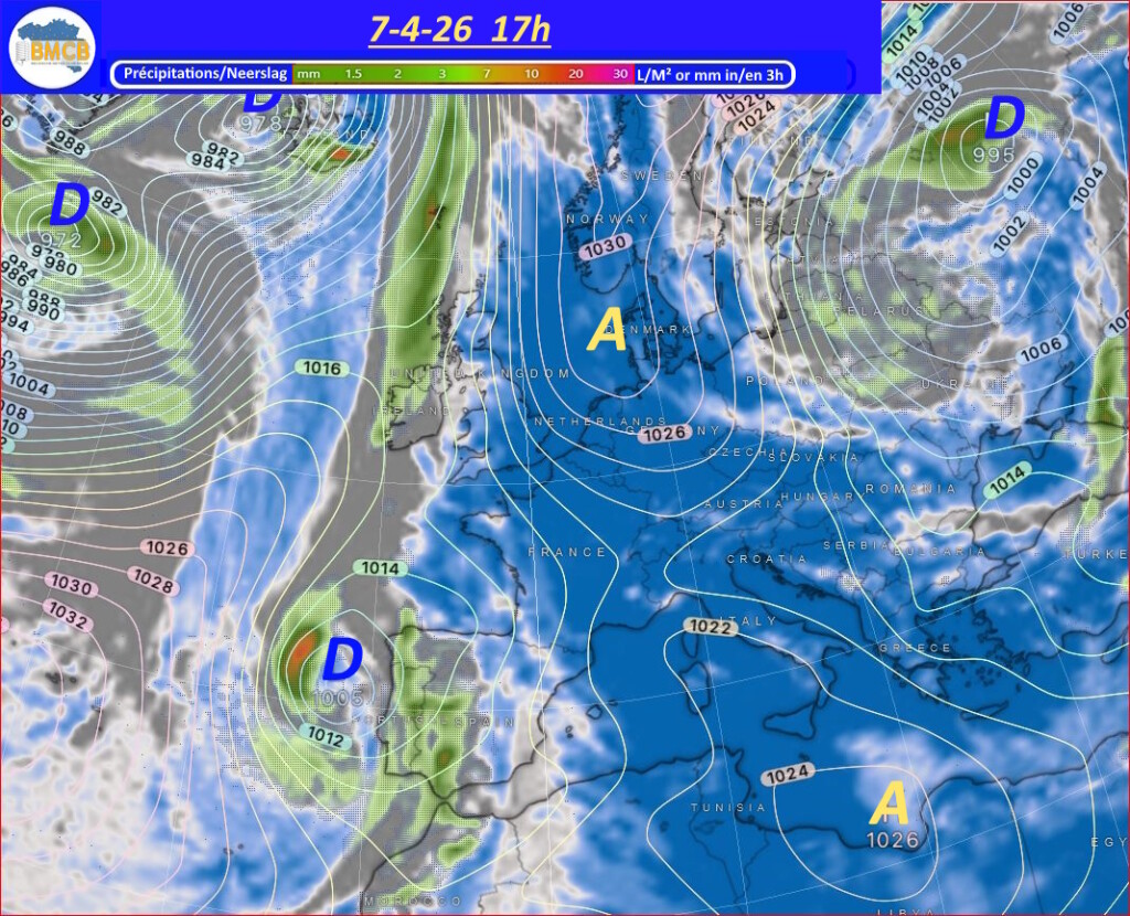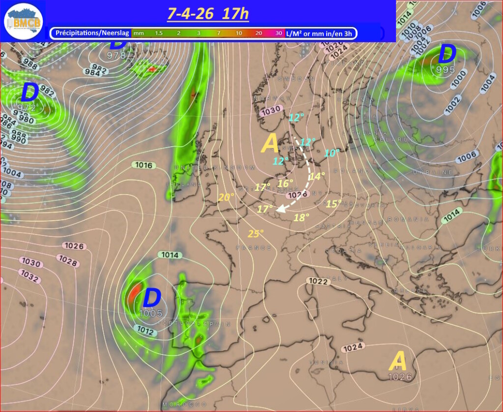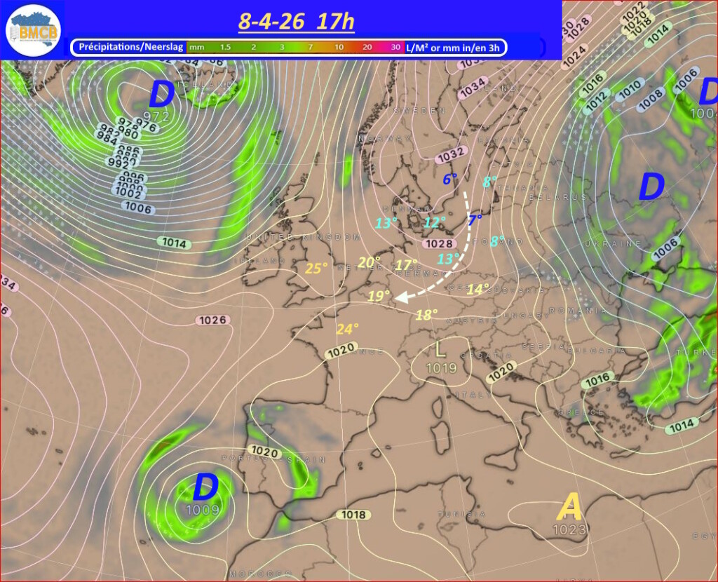Een uitgestrekt hogedrukgebied zal zich de komende dagen uitstrekken van het oosten van de Noordzee en het zuiden van Scandinavië tot Finland en het noordwesten van Rusland. Deze situatie zorgt voor de aanvoer van zeer droge, continentale en geleidelijk zachtere lucht, vóór de passage van een koufront op donderdag.