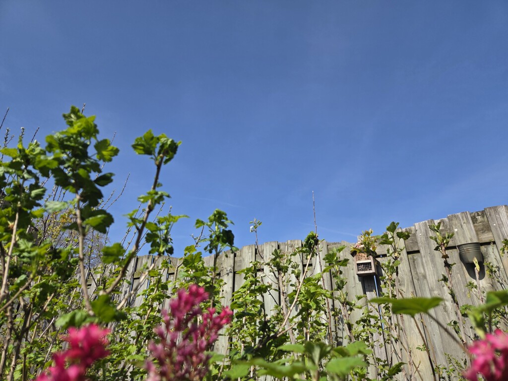 Het is droog en overtuigend zonnig, met een briesje dat soms iets vlagerig overkomt. Prima lenteweer om in te verjaren. Tevens goed weer om extra hard door te werken in de (moes)tuin, zodat het door interne warmteproductie wat warmer aanvoelt dan de temperatuur aangeeft.