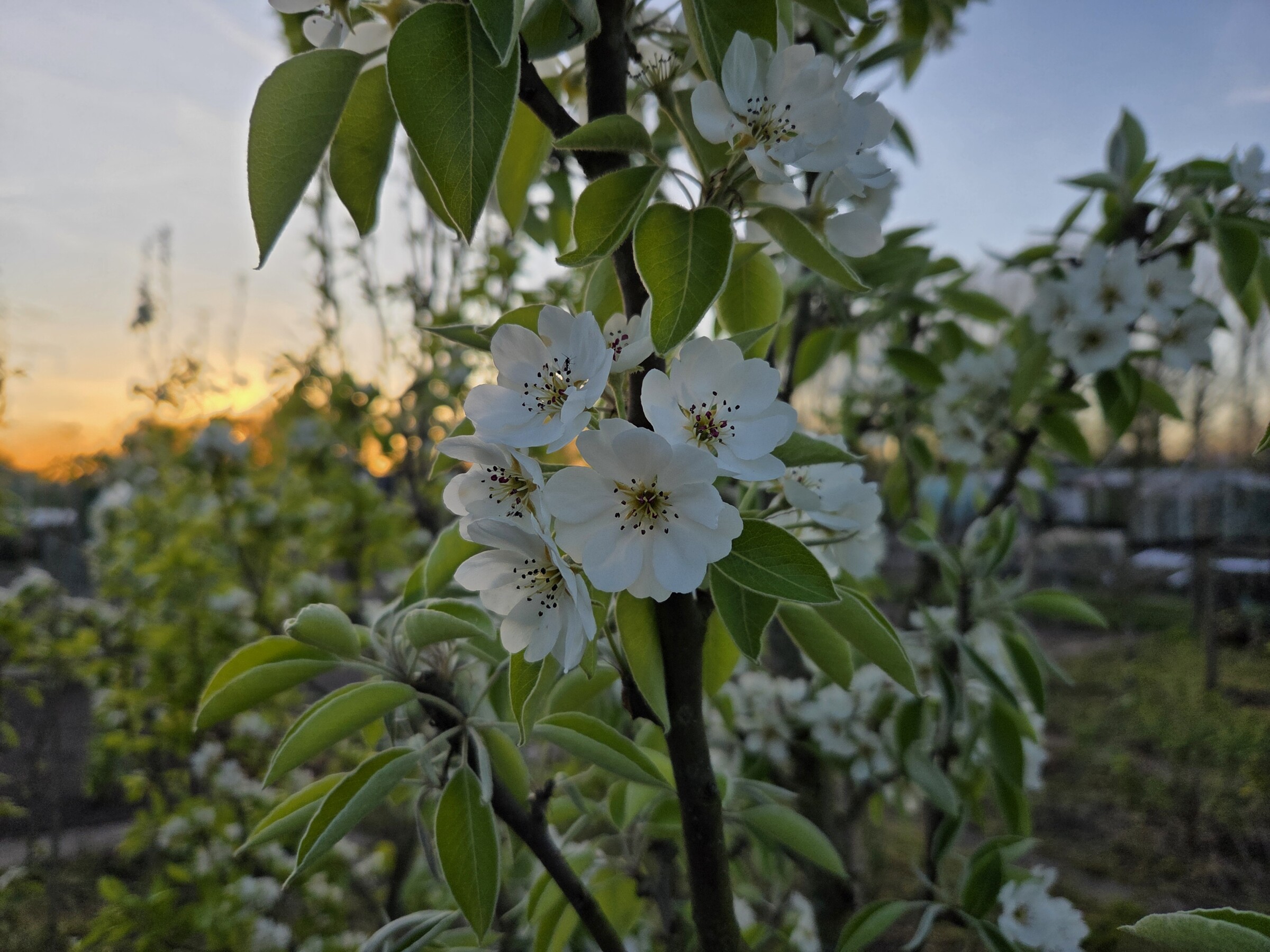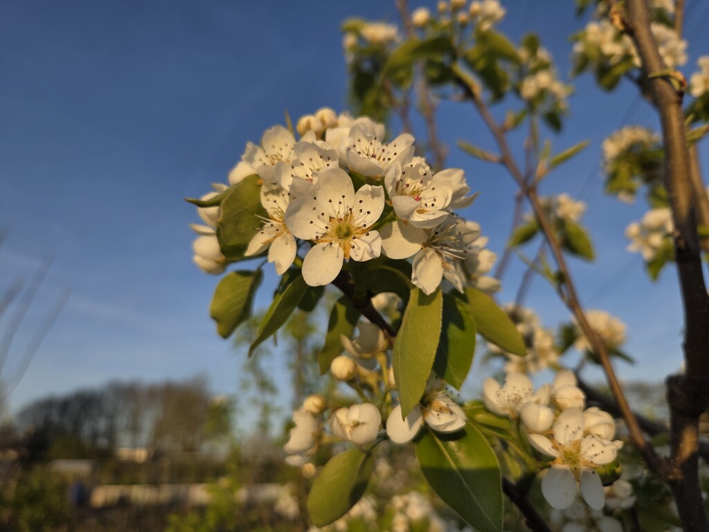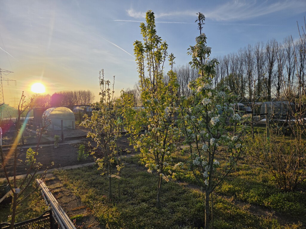 Net even rustig genoten van de perenbloesems bij de ondergaande zon. Heerlijk en in alle rust.