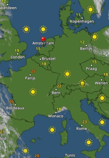 Plus (bijna) geheel Frankrijk, Duitsland, Denemarken, Zwitserland, Oostenrijk, Italië en een aantal Balkanlanden. HEEL veel zon in Europa dus..!
