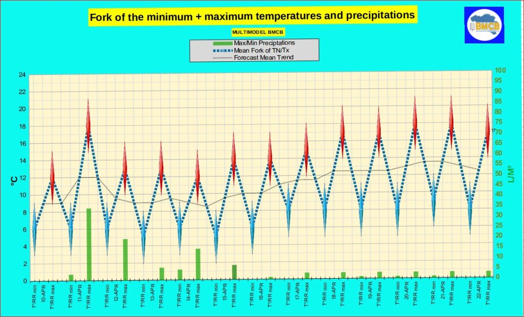 Vanaf het midden van de week volgt geleidelijk een verbetering. De neerslag wordt zwakker en schaarser, terwijl het droger wordt. Tussen 16 en 22 april lijkt overwegend zacht weer te domineren, met weinig of geen regen en een meer hogedruk-gedomineerd patroon in continentale lucht.