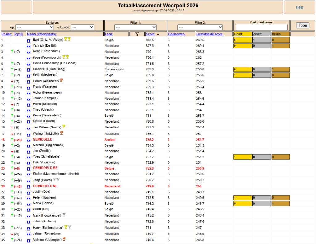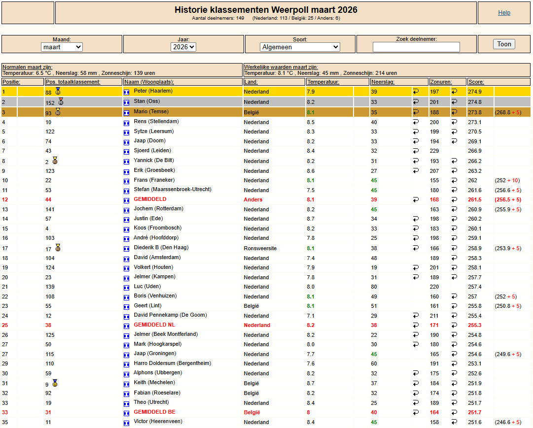 Ik wens iedereen die heeft ingeschreven voor de Weerpoll van april 2026, veel succes en zal zo de eerste tussenstand hier van online zetten.