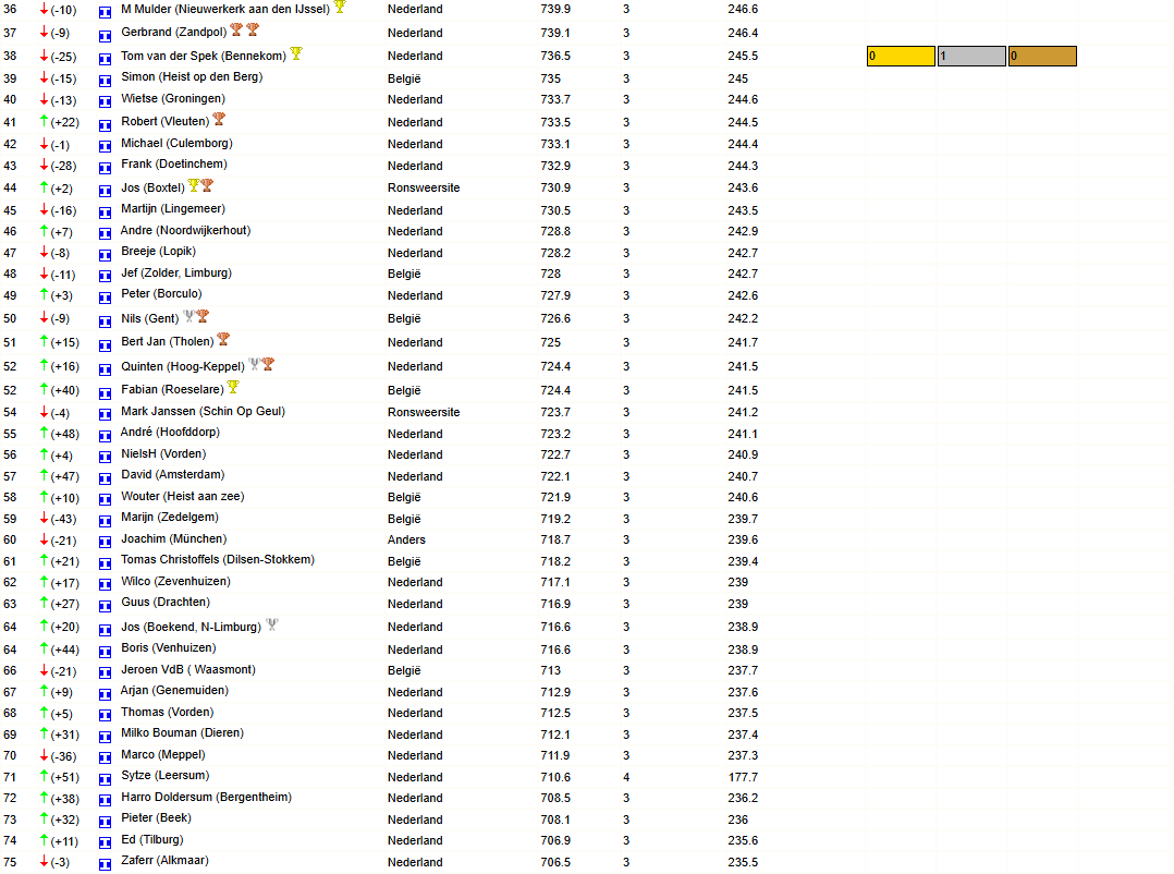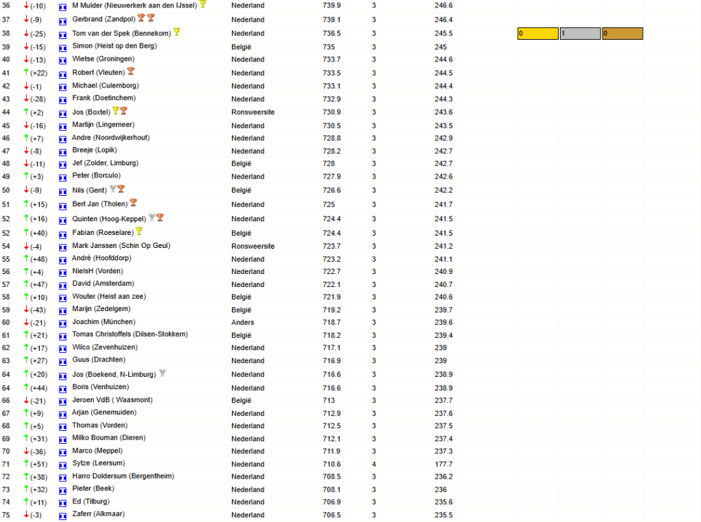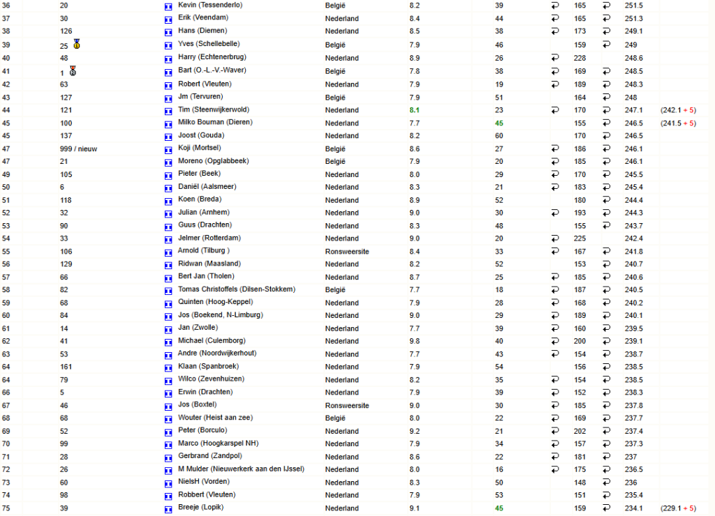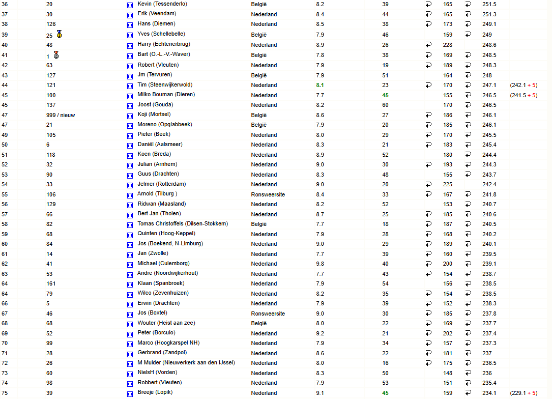 Uiteindelijk waren er 37 spelers die een score wisten te halen van 250 punten of meer (een door mij zelfde gestelde grens die bepaalt of je redelijk/goed in de richting zat),