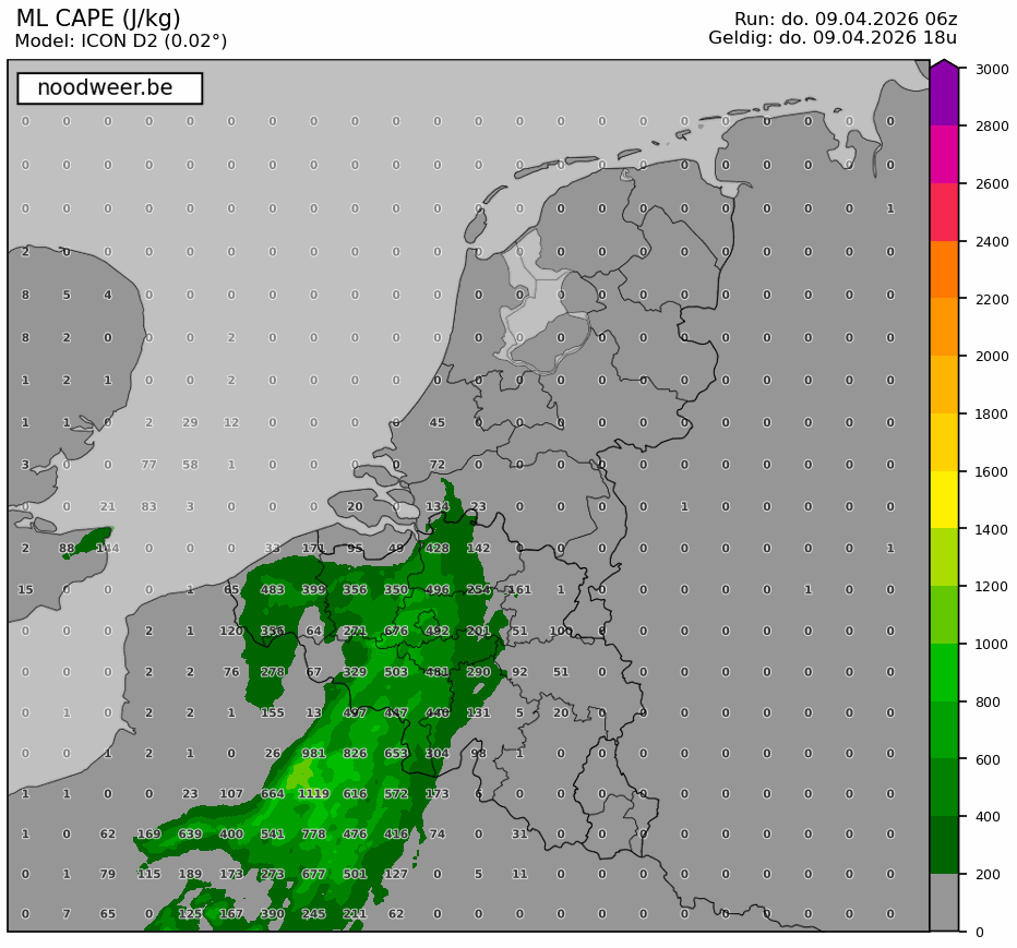 Inclusief 1e noemenswaardige MLcape (onweer)