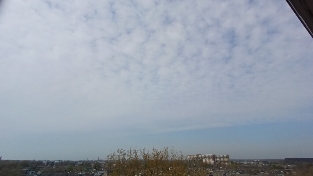 Enige tempering van de zon en de warmte. Er is vrij veel bewolking ontstaan. Het begon als een voetbalveld maar omvat nu al honderden vierkante kilometer bewolking.