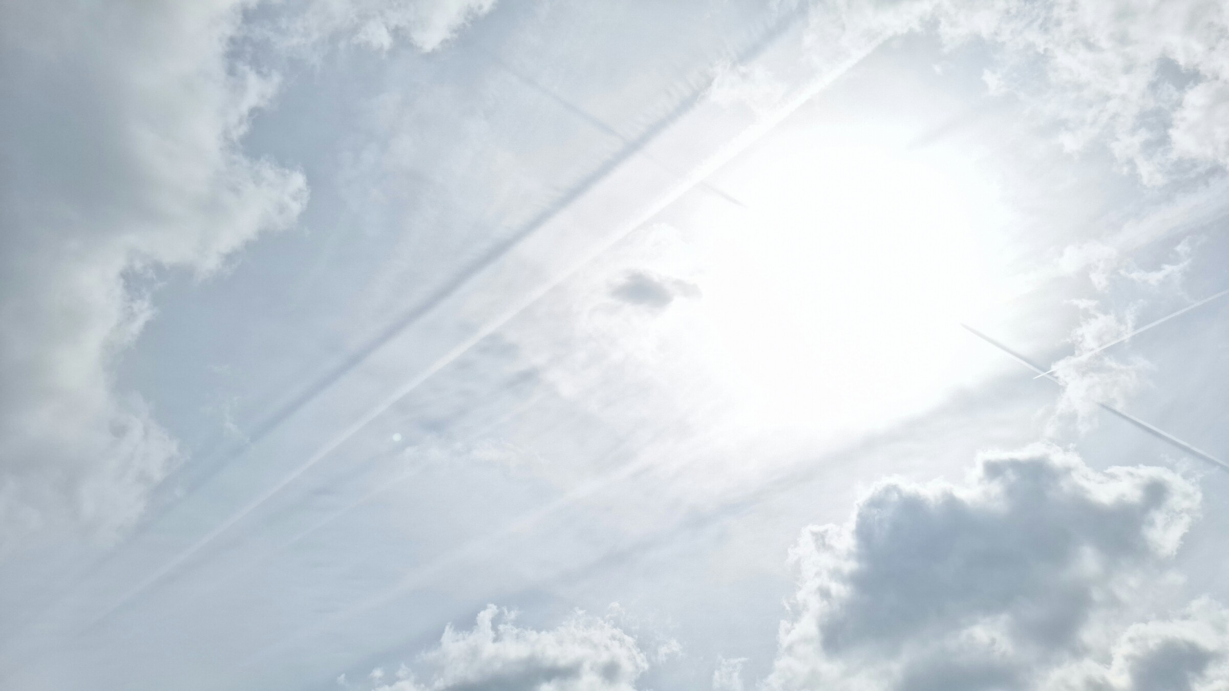 Zie je ook niet elke dag verschijnen. Contrails alsof het een raster is. 13u55, vanuit Erembodegem (Oost-Vlaanderen). Beeldje gemaakt met smartphone bij gebrek aan fototoestel.