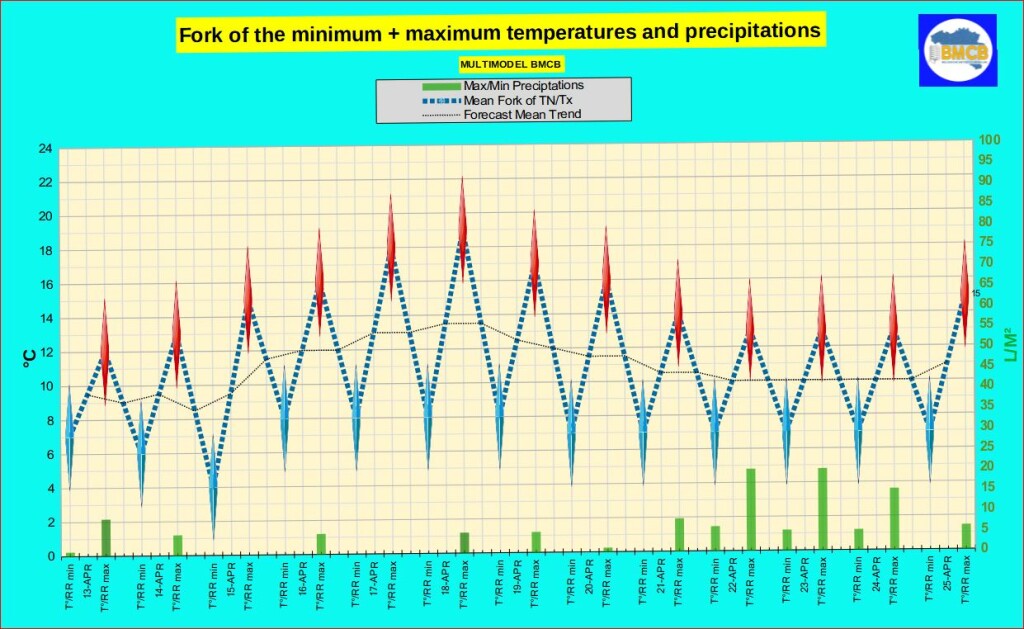 Voor 25 april wordt een relatieve verbetering verwacht met minder frisse temperaturen en weinig neerslag.