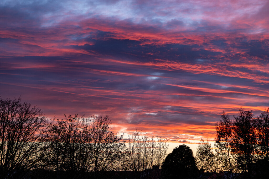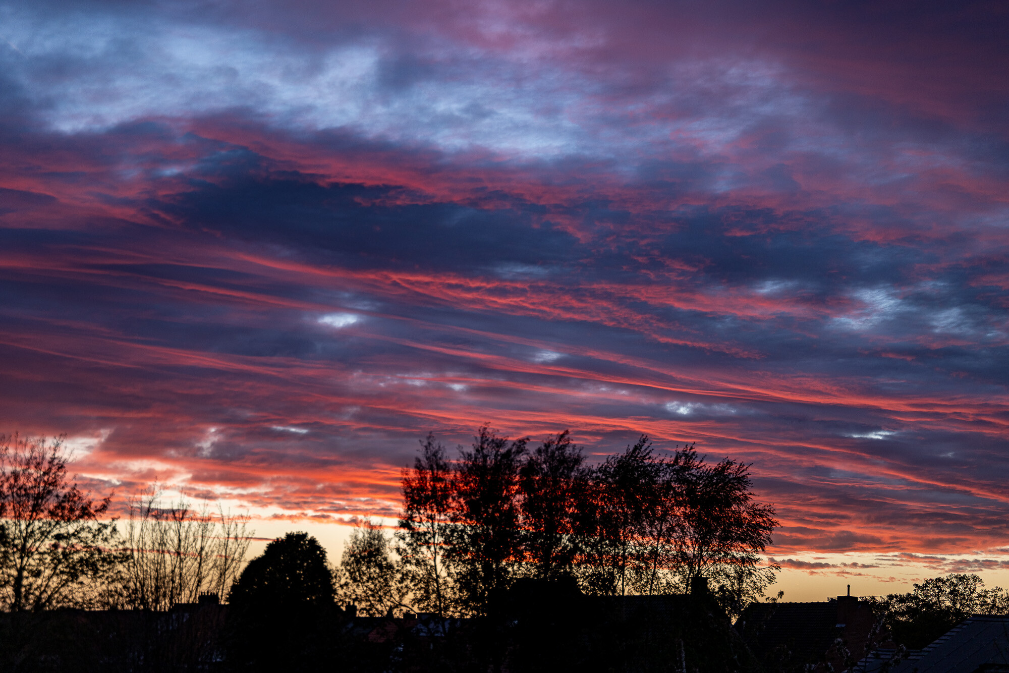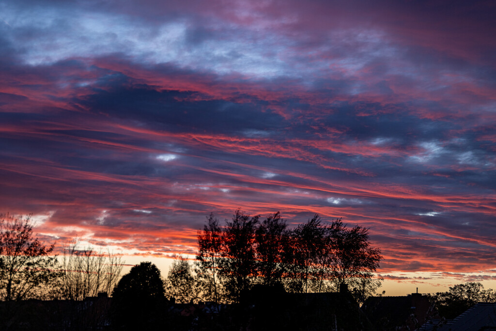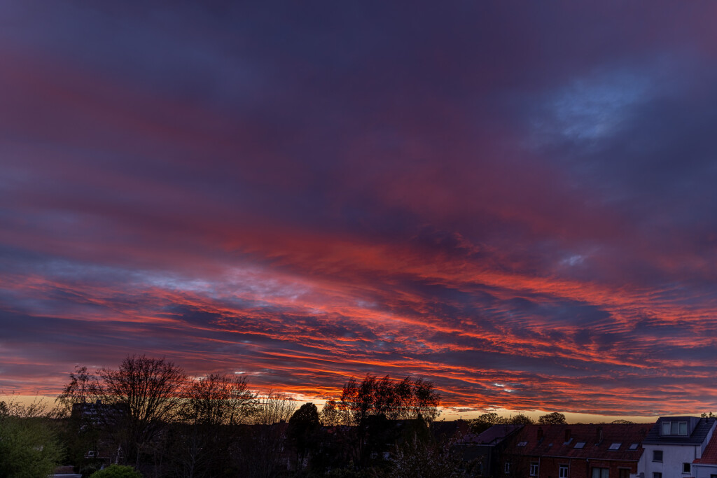 Kraakhelder tot voorbij de horizon en dan snelbewegende achterzijde van het front parallel met de wind, gaf mooie gekleurde lijnen