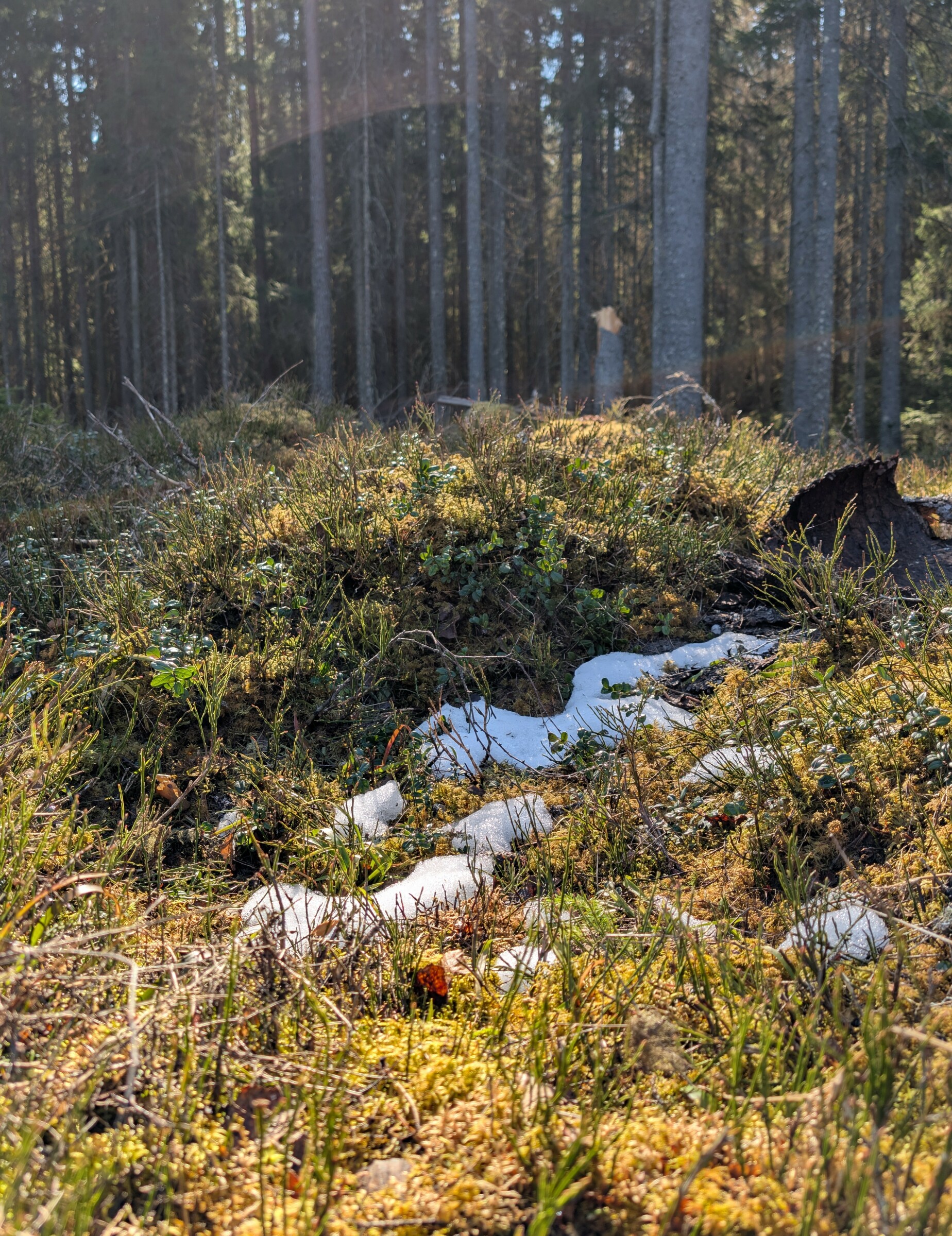 Na vandaag gaat de minimum temperatuur ook wat de lucht in, dus het zal de laatste vorst zijn en ook de laatste keer ijs op het meer. In het bos nog altijd sneeuwresten. Die houden het goed dankzij het rustige droge weer met het lage dauwpunt.