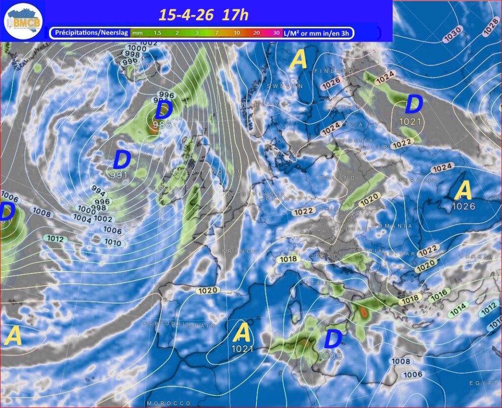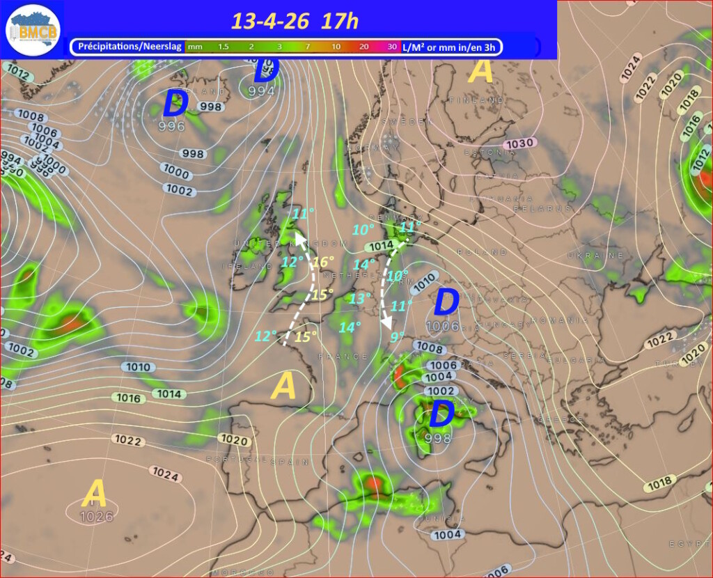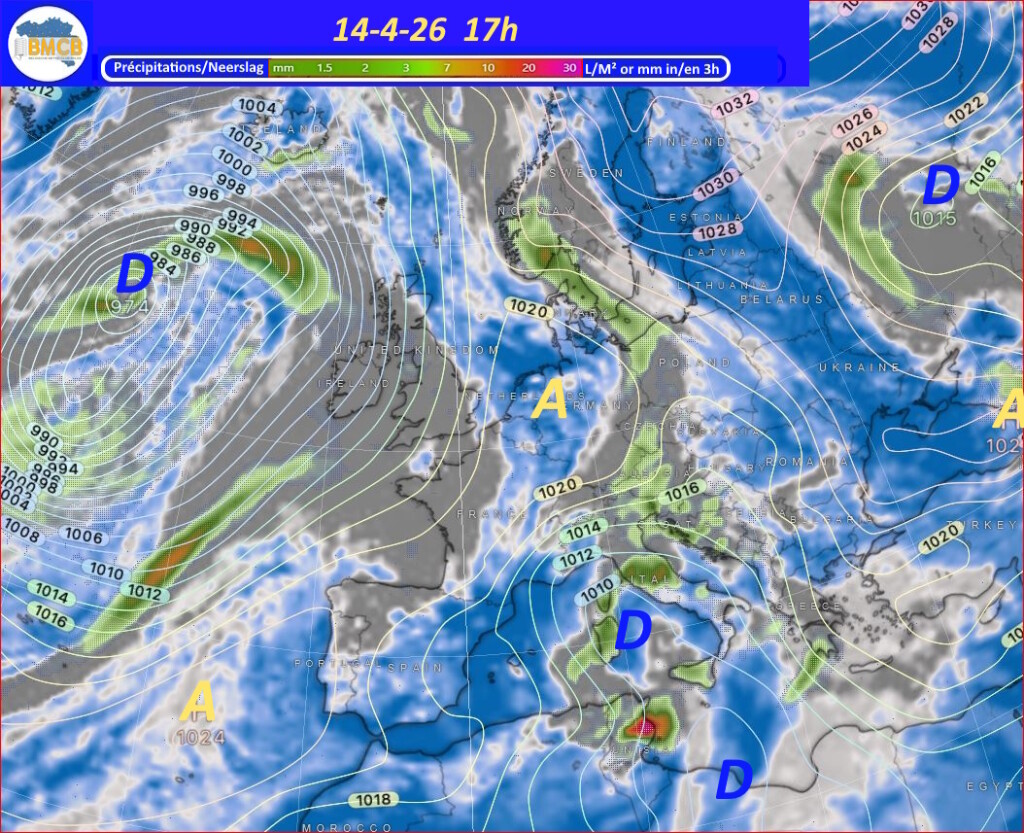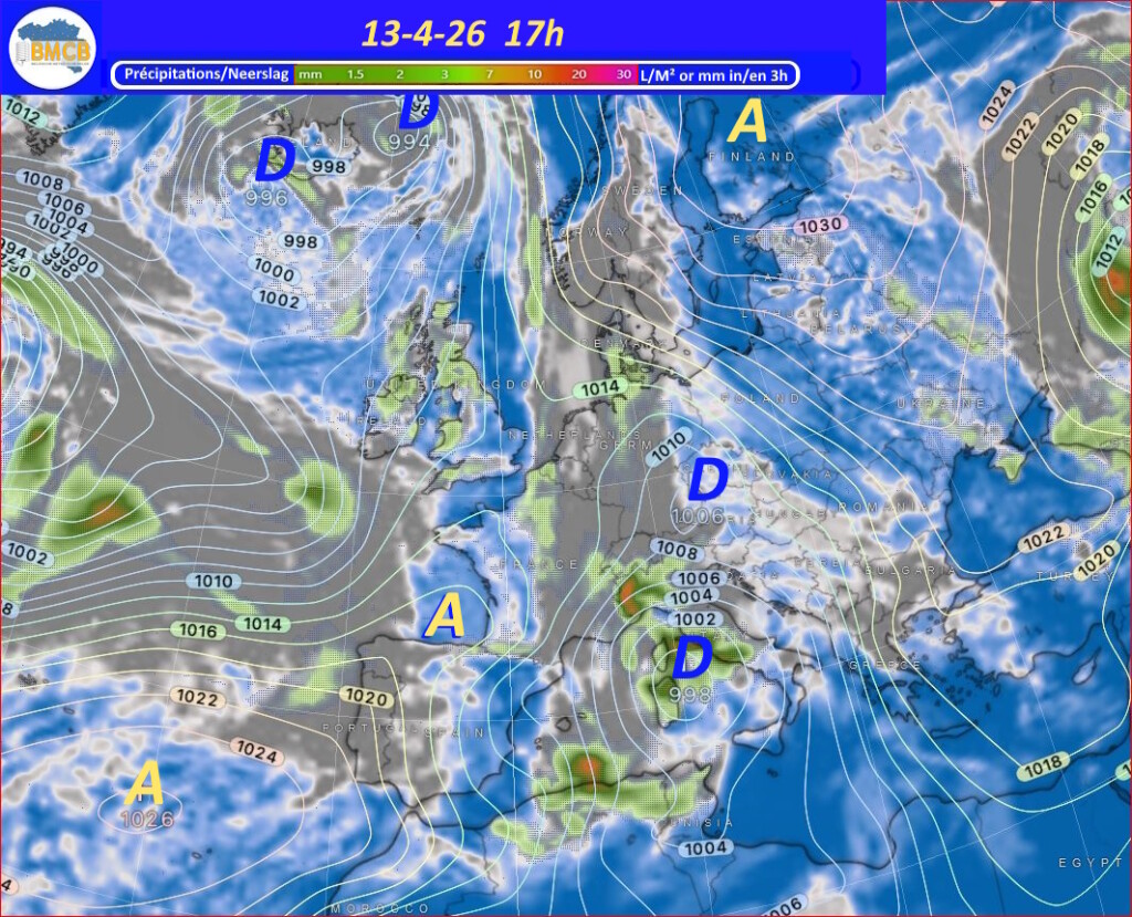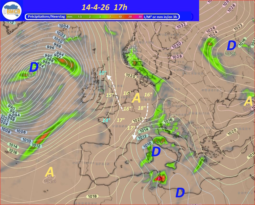 Voor de rest van de week trekken verschillende hogedrukkernen over het westen van Frankrijk, Duitsland en het zuiden van de Baltische Zee. Zwakke storingen van Bretagne naar Engeland en de Noordzee kunnen af en toe meer bewolking en lichte regen brengen, terwijl het zacht blijft voor het seizoen.