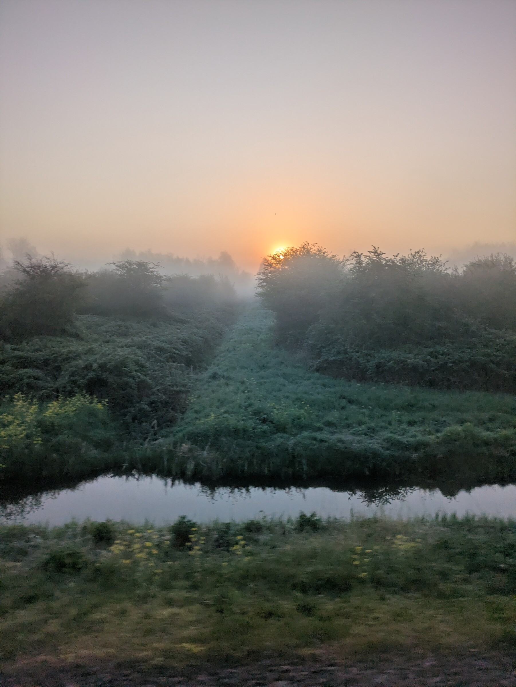 Treinfoto's (door een vies raam helaas) van de mist in de polder