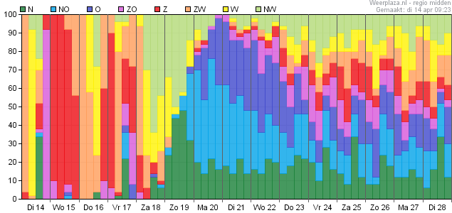 De windrichting gaat de komende periode alle kanten op.