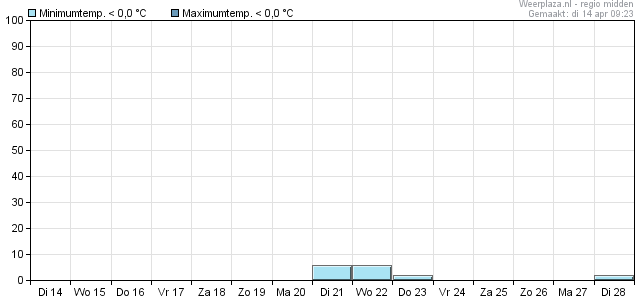 Kansen op vorst zijn gering en laten alleen een signaal zien op 21,22,23 en 28 april.