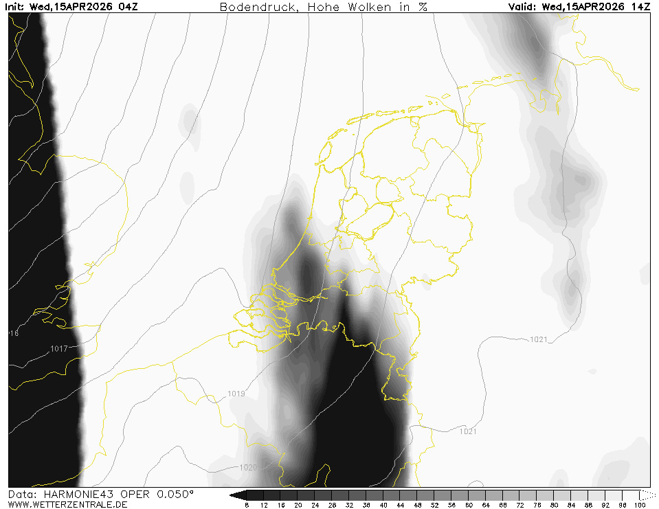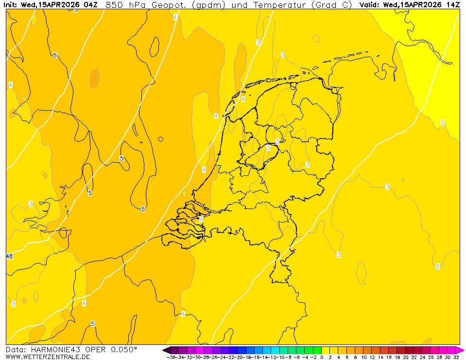 Als we daar 16C bovenop de T850 mogen tellen, de middelbare en lage bewolking laat genoeg arriveren én de hoge bewolking niet te veel instraling blokkeert. Zolang de wind aflandig blijft zou het daar in theorie nipt kunnen, tegelijkertijd ook duidelijk meer wind en dus menging in het zuidwesten.