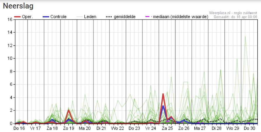 het zou wel eens voor NW-Vlaanderen een heel droge maand april kunnen worden. Je niet miskijken op de oper, die zit helemaal bovenaan. Gisteren hier geen meetbare neerslag.