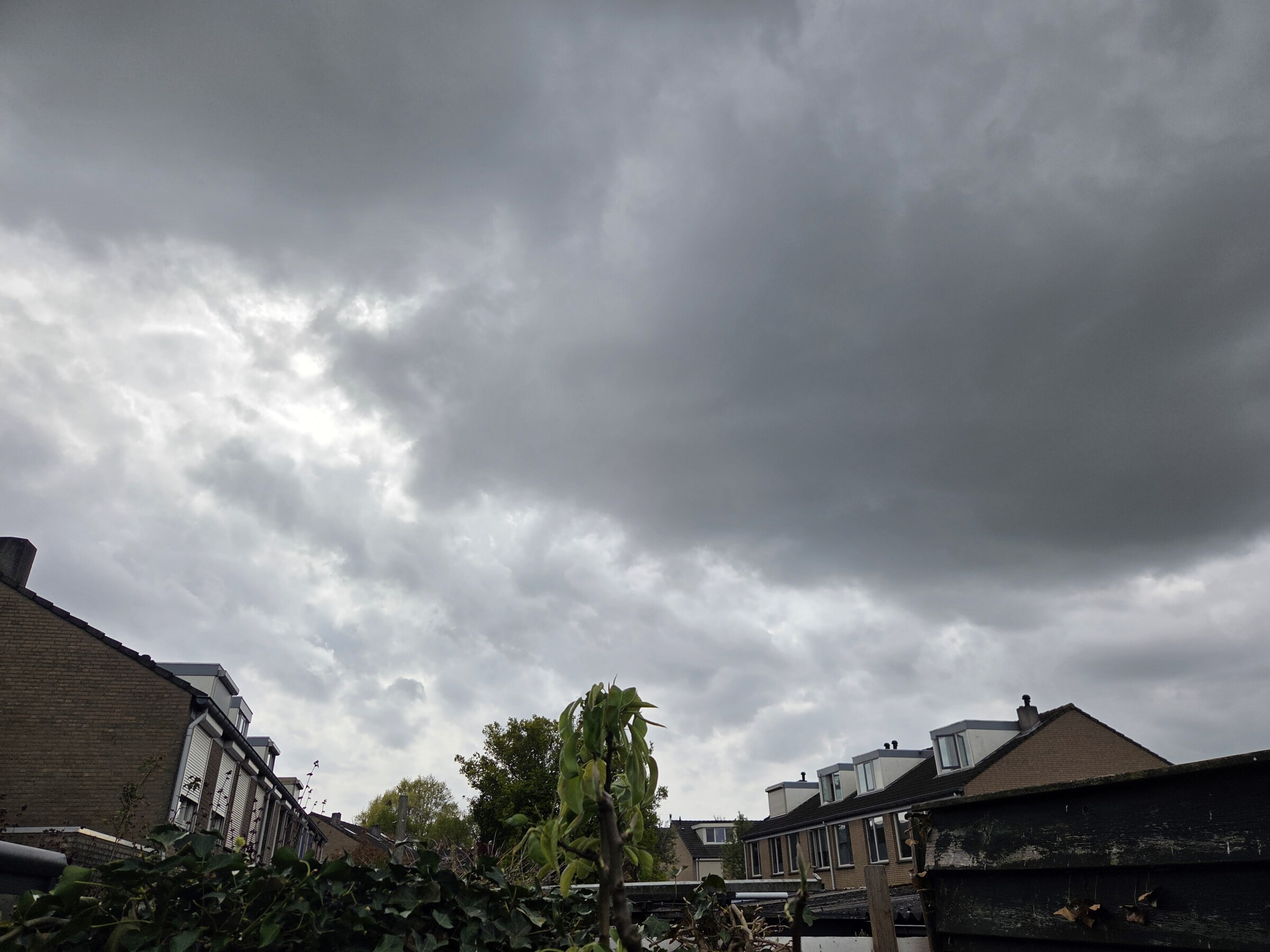 Vanochtend begon nog best aardig, nu een fris briesje en bewolkt buiten. Thermostaat van de kachel staat op 19° maar de centrale verwarming is nog niet aangeslagen omdat het binnen door de zon vanmorgen ook 19° is. Zolang het bewolkt blijft bij 16°C verwacht ik binnen wel langzame afkoeling.