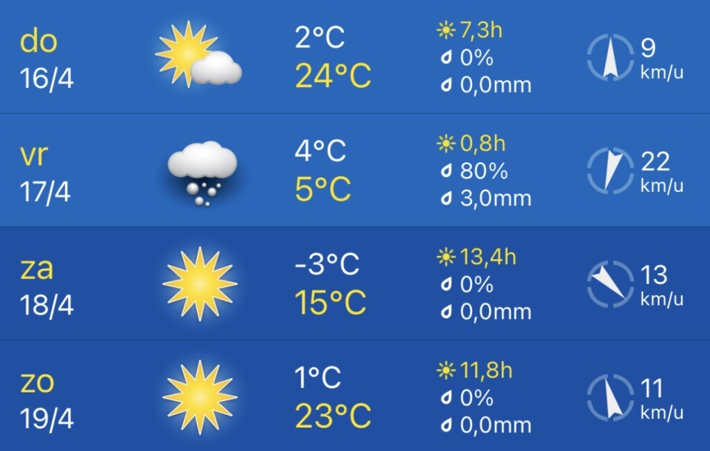 Dat lijkt mij heel fors, ook voor daar, al in 2e decade april!