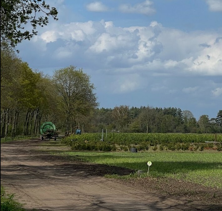 De beregeningsinstallatie staat al weer klaar bij dit landbouwperceel. Foto gedeelte is van gistermiddag.