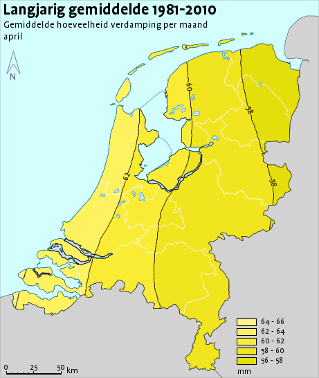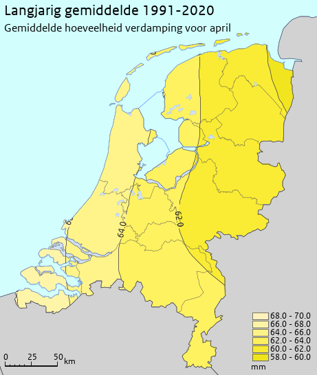 Tegelijkertijd is de gemiddelde verdamping over april licht toegenomen.