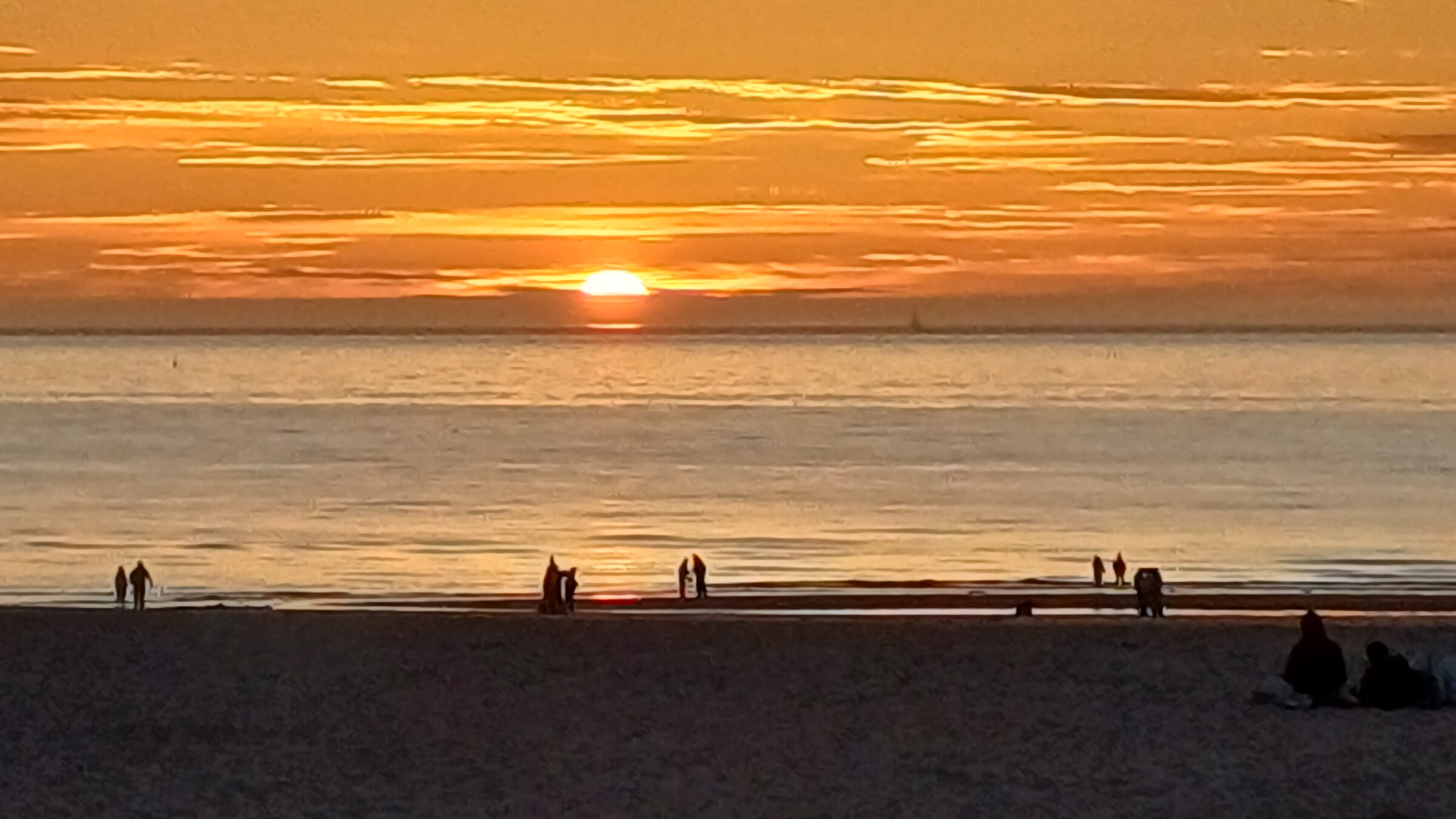 Een zonsondergang met kustlijn zuidwest-noordoost gericht..mooi in Oostende te zien.