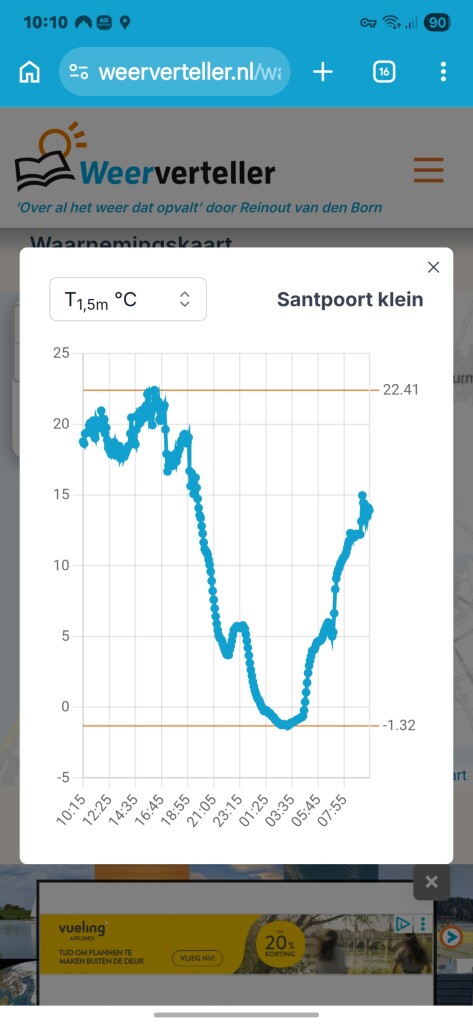 De grafiek van een Sanpoorts duin hier in de buurt geeft voor hier de temperatuur redelijk goed weer.