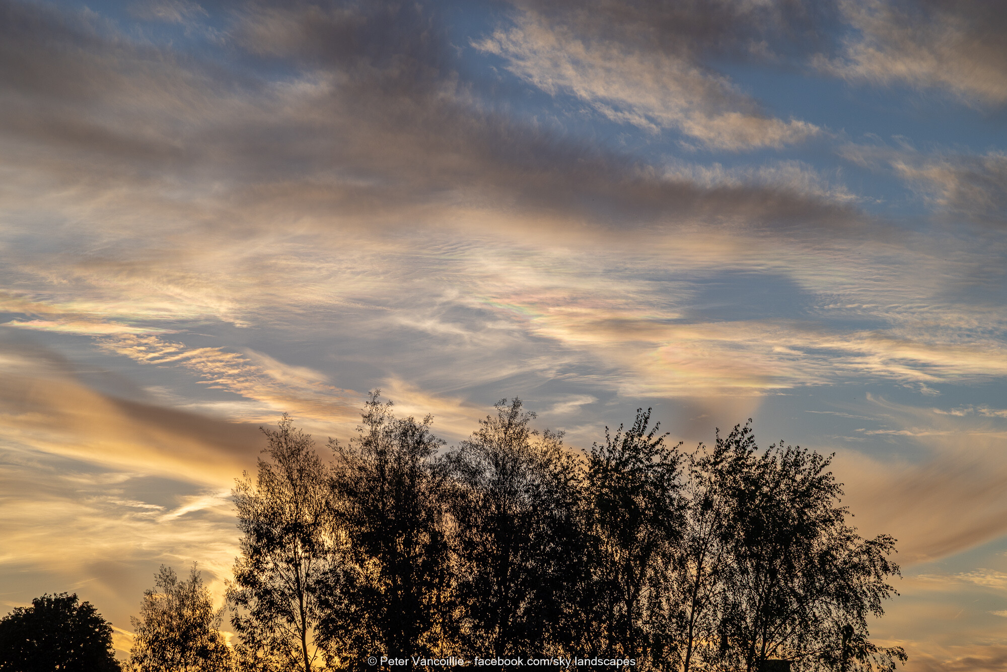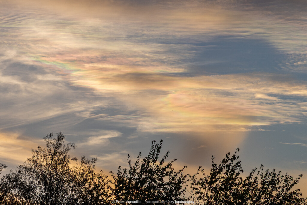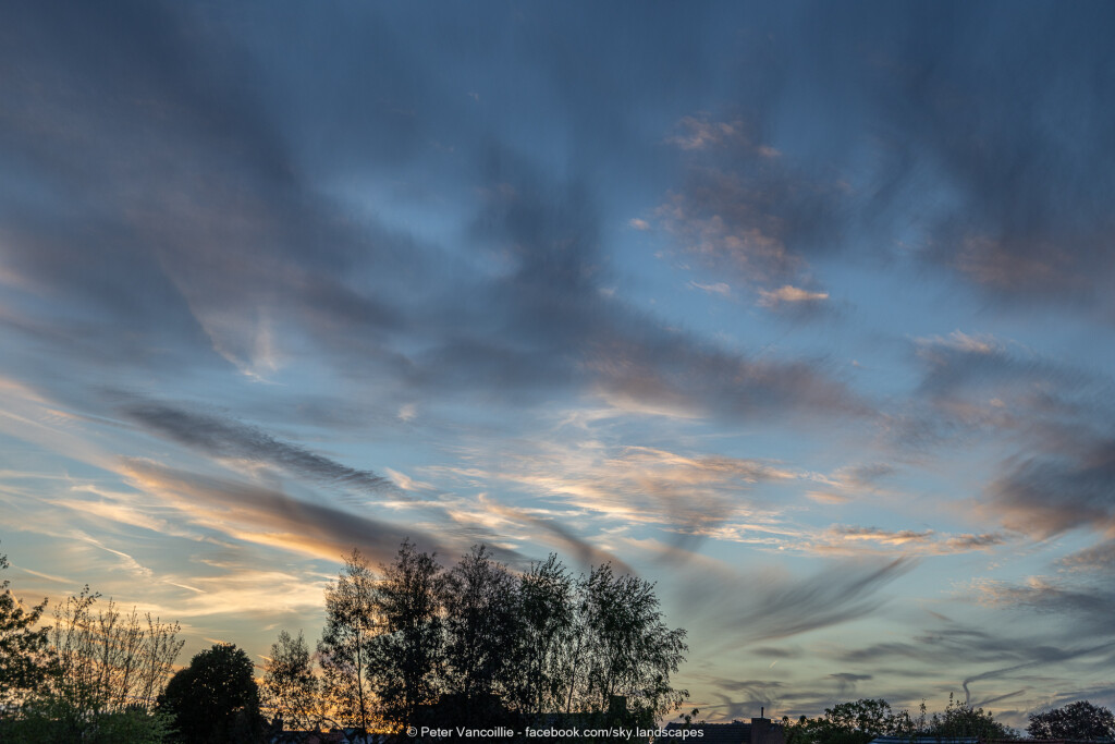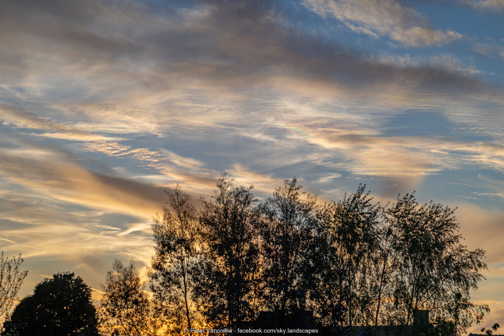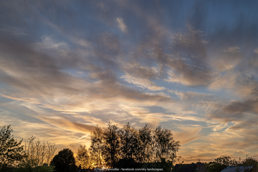 Geen tijd gehad die avond of gisteren om die te plaatsen. Het was nog eens een boeiende wolkenlucht met lagen cirrocumulus en altocumulus en virga, en stukjes behoorlijk felle irisatie bij momenten.