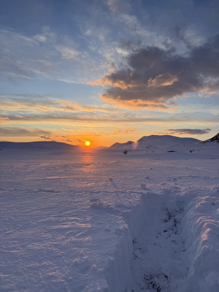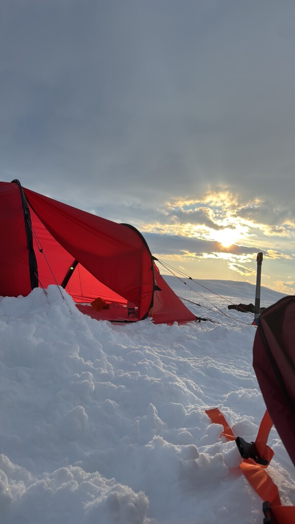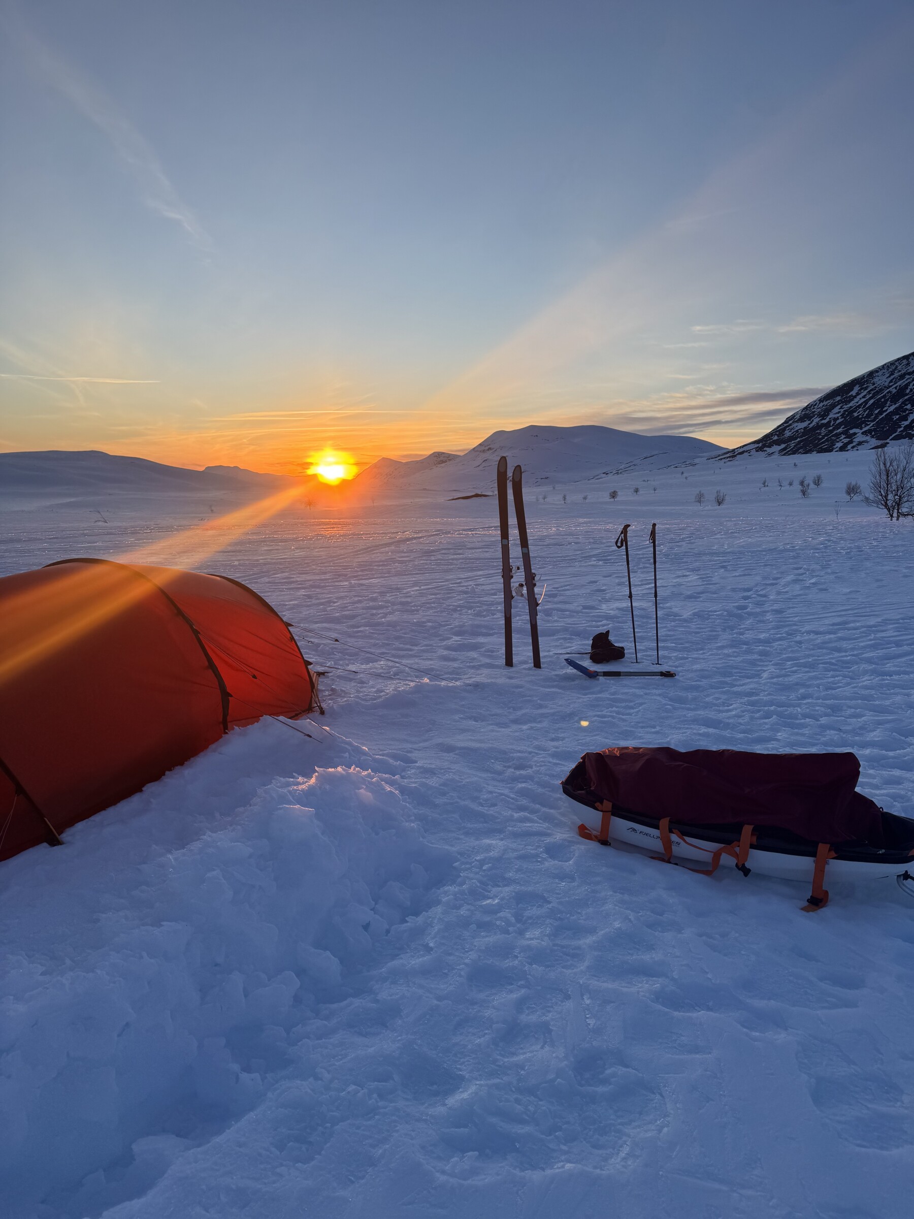7 dagen lang op pad geweest met de skies en slee om zo door de Zweedse bergen te skiën waar vroeger de sami leefde helaas op het einde sneeuw blind geworden vanwege de sterke zon dus wil iedereen aanraden die ooit zo iets doet altijd een zonnebril dragen