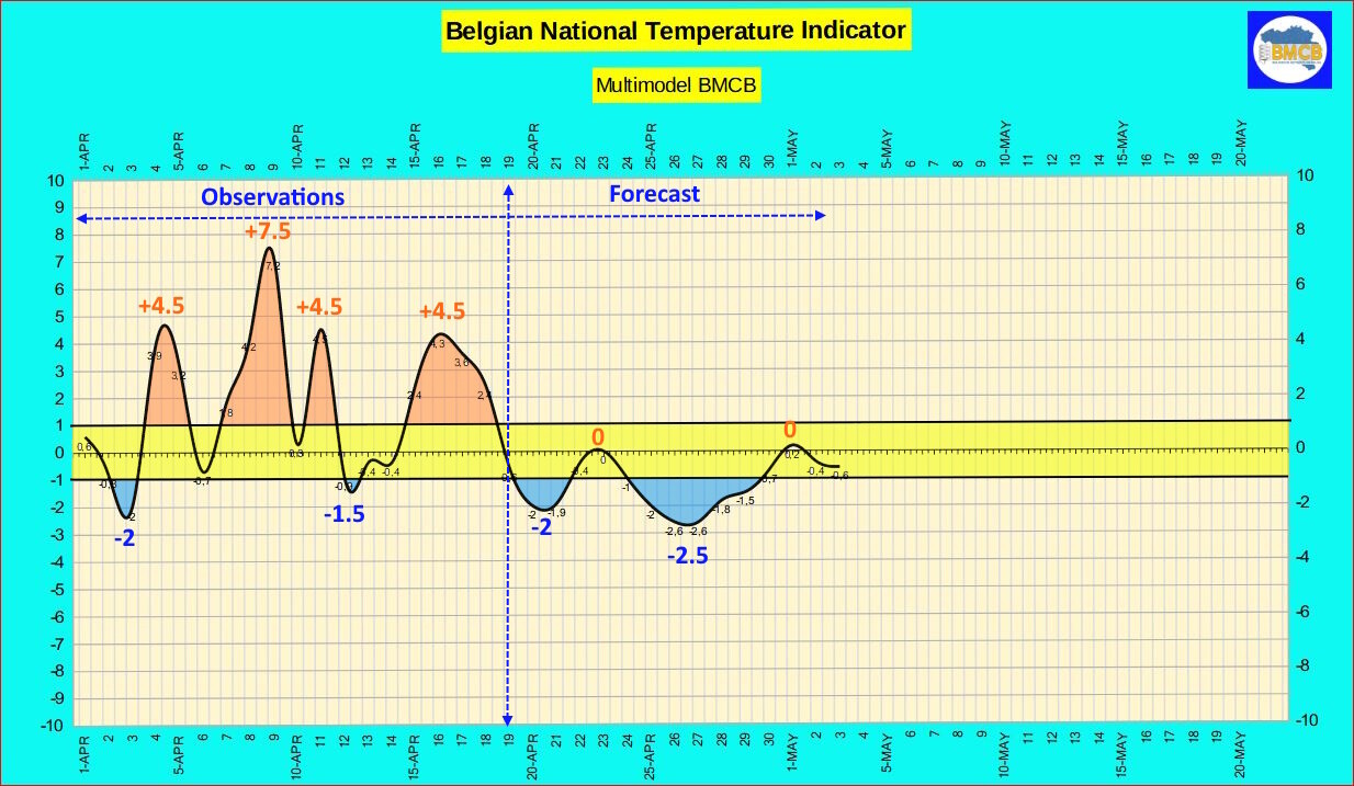 Tijdens de komende twee weken zal de nationale thermische index naar verwachting schommelen tussen 0 — overeenkomend met temperaturen rond de seizoensnormen — en -3, wat wijst op een overwegend frisse situatie.