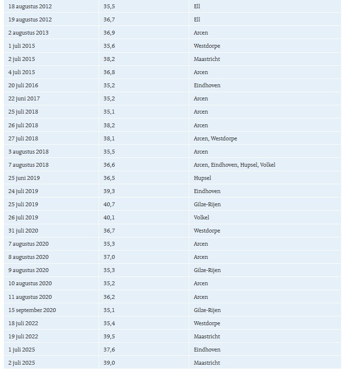 Zolang het KNMI deze lijst met eervolle vermeldingen gewoon vanaf 35C blijft bijhouden en aanvullen. Is soms handig om de herinneringen aan de beste zomerdagen weer even naar boven te halen.