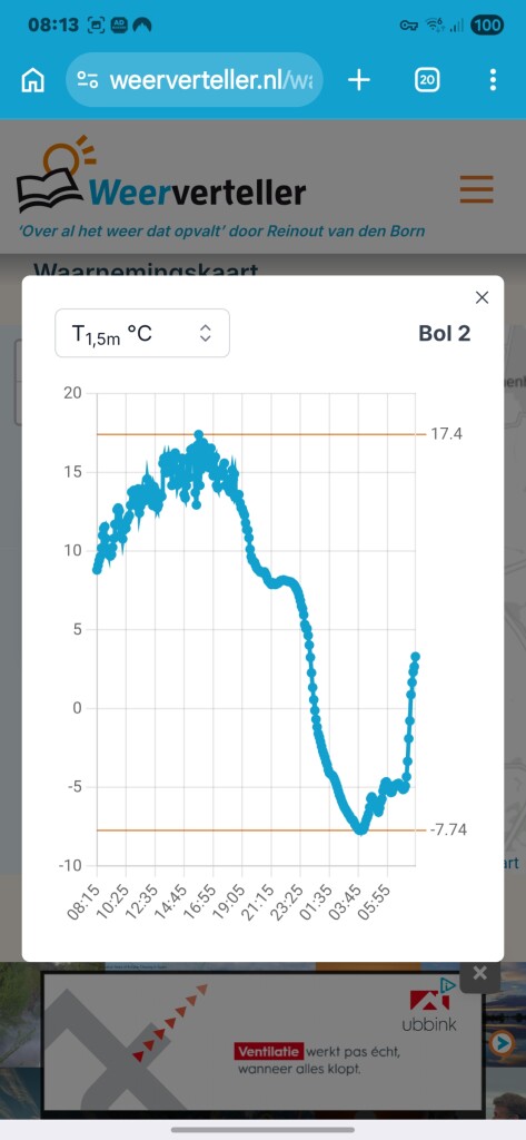 Maar ruim min 7 in andere duinpannen. Best pittig! De temperatuur schiet wel omhoog momenteel.