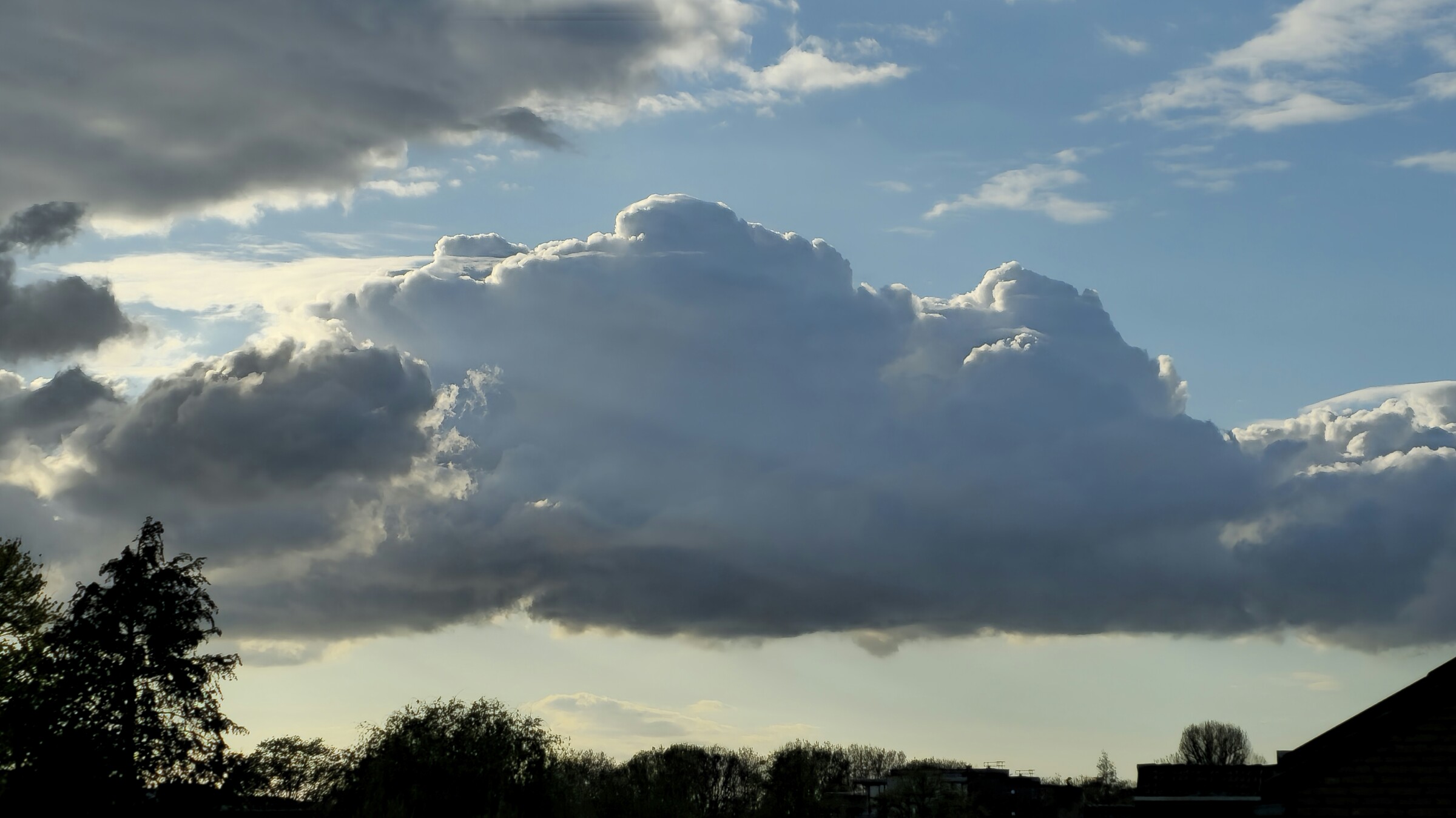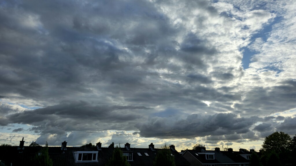 De warme zon is weg. Regen uit't oosten komt eraan NNO 4Bft goed zicht