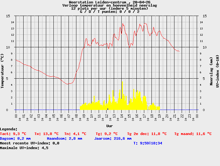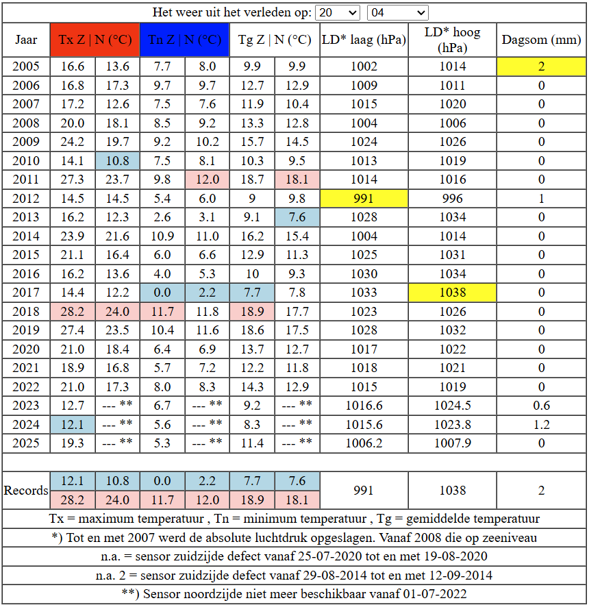 Waarmee gesteld kan worden dat in de afgelopen 21 jaar de hoogste dagsom op 20 april slechts 1,2 mm bedroeg.