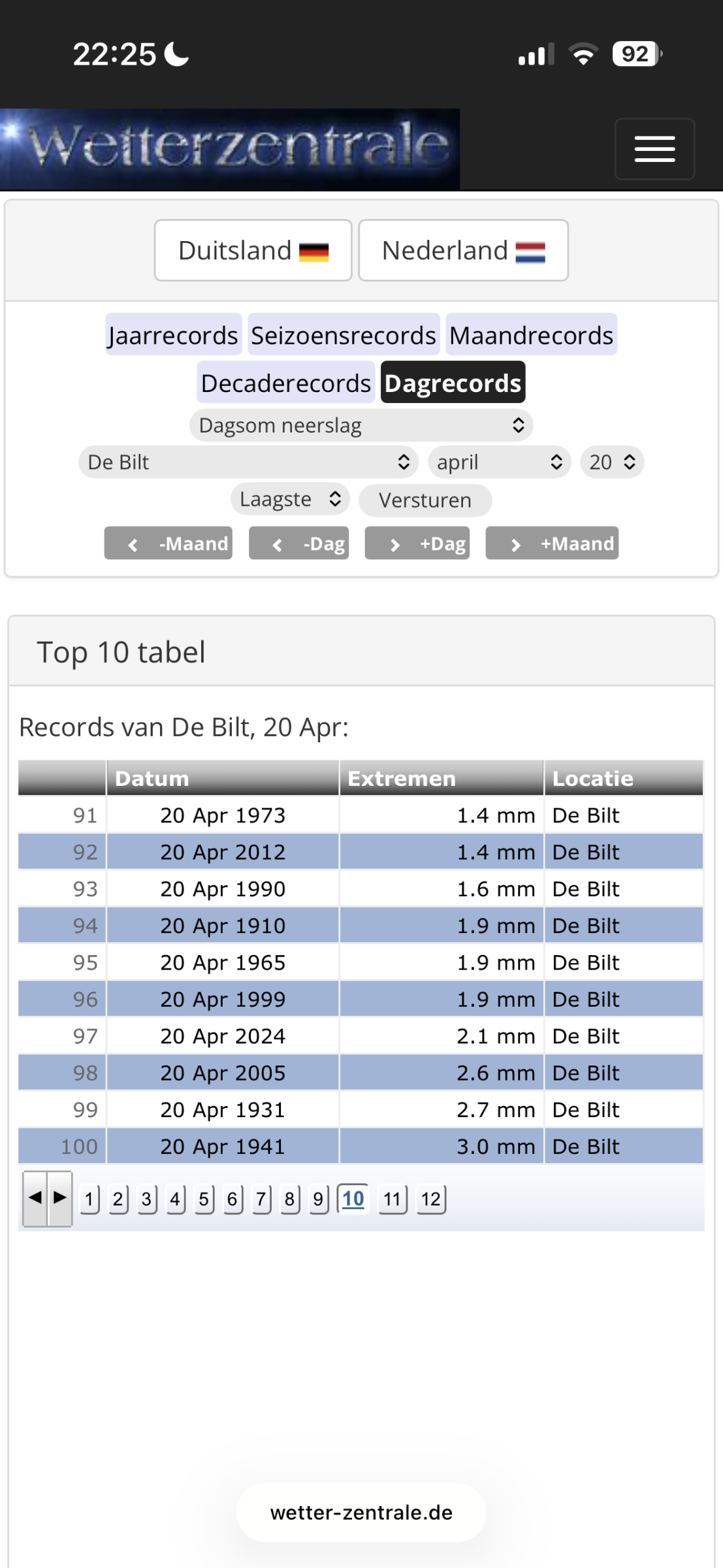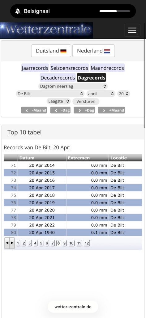 Wauw best wel een hele droge dag in de afgelopen 119 jaren. Bijzonder. Leuk dat je dit op viel. Ook vandaag ging het hier nergens over 0,6mm maand op 10,6mm nou nou.