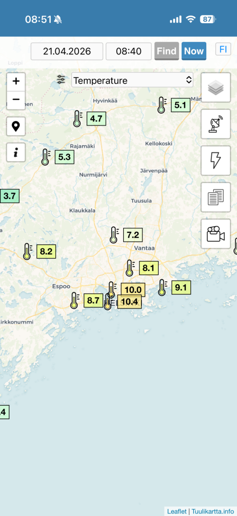 De temperatuur schiet omhoog bij (wederom) een strakblauwe hemel. Vanmiddag kan het zomaar 17 of zelfs 18 graden worden hier in Helsinki, terwijl 8 graden de gemiddelde Tx is voor april.