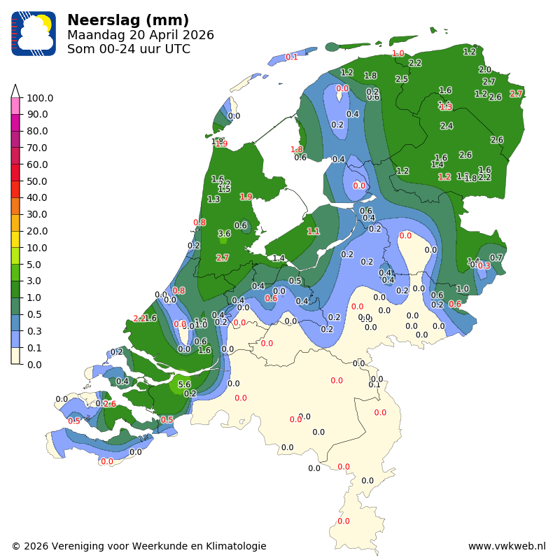 Harmonie berekent nog 3 tot 4 mm hier in namiddag en avond