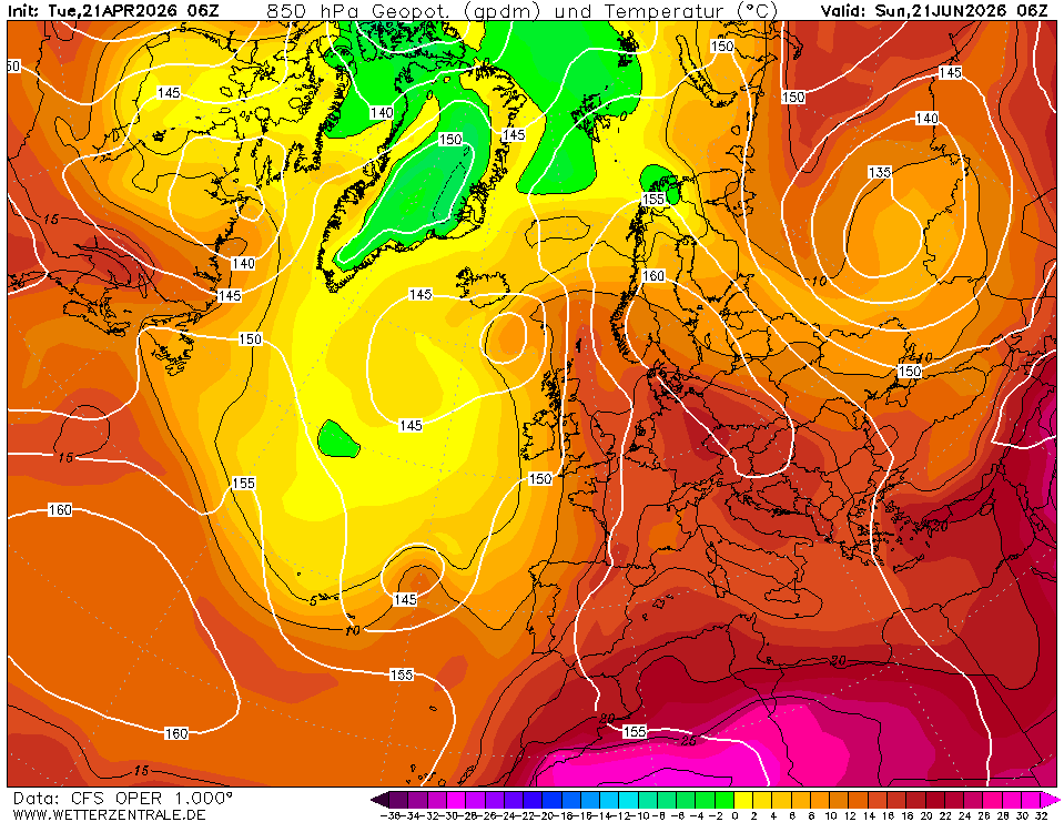 Perfecte kaart voor 21 juni, zou de tweede tropische langste dag ooit gemeten worden (en tegelijkertijd de tweede achtereen).
