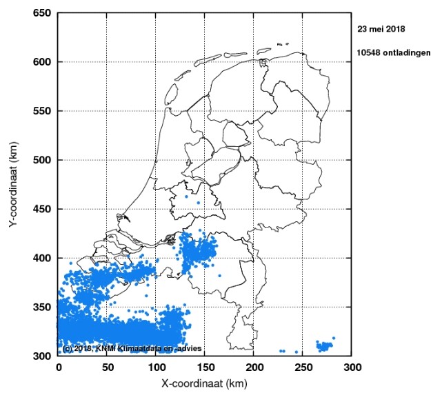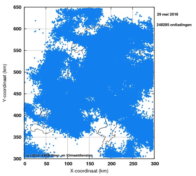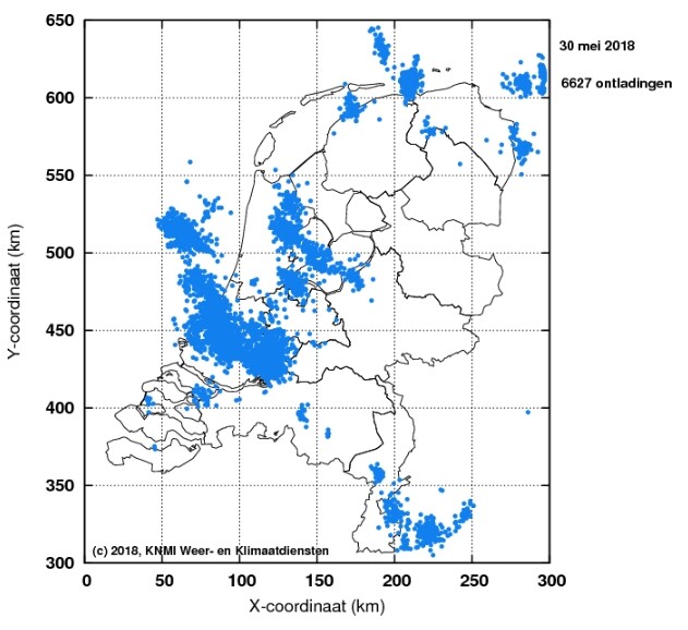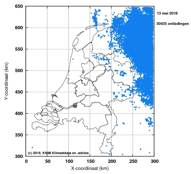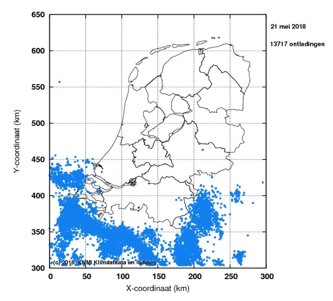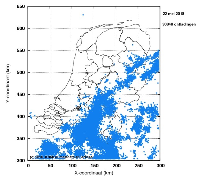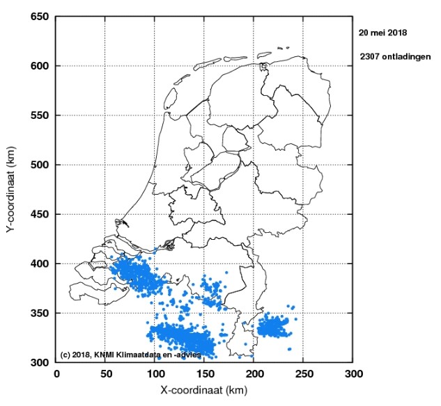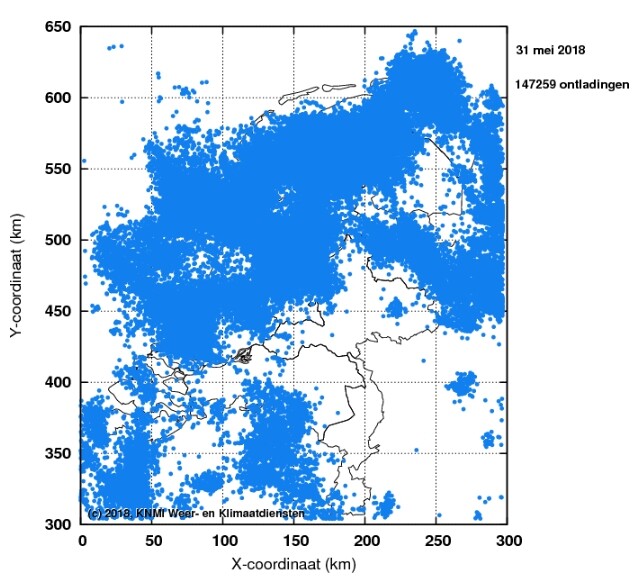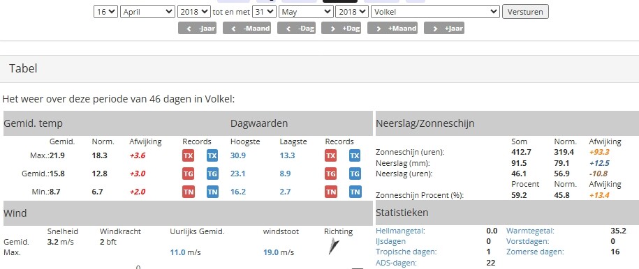 Zeer zonnig, met afstand recordwarm en buitengewoon onweersrijk. Hier ook zeer nat met 155 mm tussen 16 april en 31 mei 2018, de toenmalige normaal voor de hele lente was voor neerslagstation Oss 168 mm.
