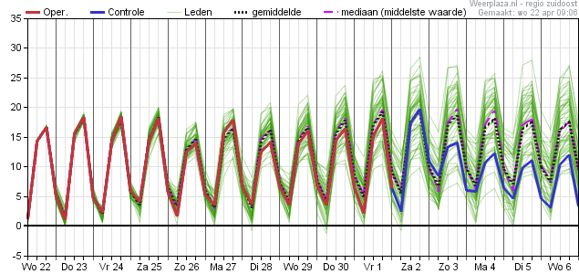 Komende tijd vaak richting 18 C, wellicht een verdwaalde twintiger in stedelijk gebied.