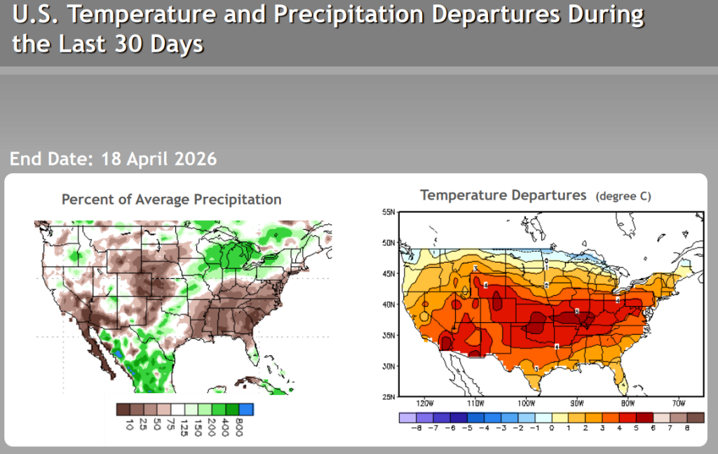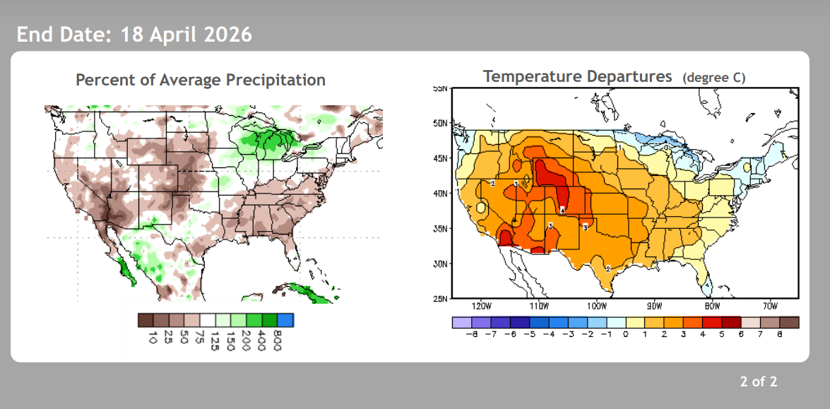 Wat betreft het extraatje. De grote droogte en hitte in zuidelijke delen van de VS kunnen gekoppeld worden aan de uitloop van de La Nina. Typisch daarvoor is de uitstroom van kou over Canada, met als tegenhanger de hogedruk verder naar het zuiden. Op dit moment is de ENSO neutraal, de getoonde anomalieën kunnen absoluut nog niet verband houden met de voorspelde El Nino. In de onderste afbeelding zien we de anomaliën over de afgelopen drie maanden. Die daarboven van de afgelopen maand. Met uitzondering van het uiterste zuidwesten zien we een ontspanning van de droogtesituatie in de komende week, in de VS (zie de neerslagsom van de ochtendrun van de GFS).