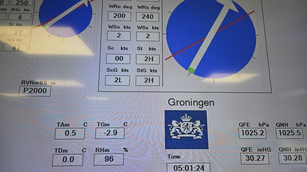 Goeiemorgen, zonnig & half bewolkt, Tact 7C, NNO 3Bft, goed zicht 25km
