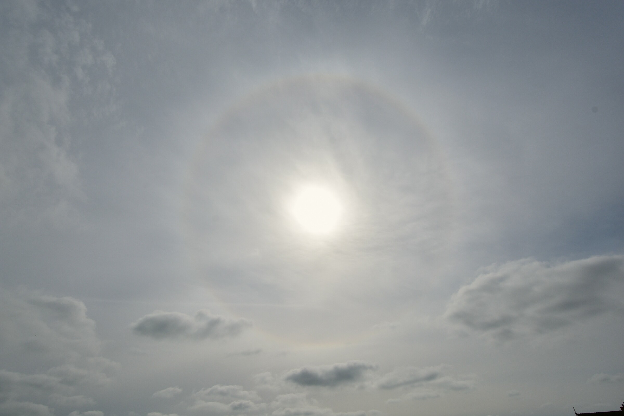 Met aangepast contrast zijn schaduwen contrails zichtbaar