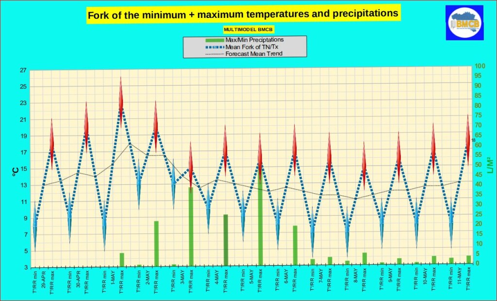 Evolutie volgens het BMCB-multimodel (ICON – AIFS – GFS – ECMWF)
